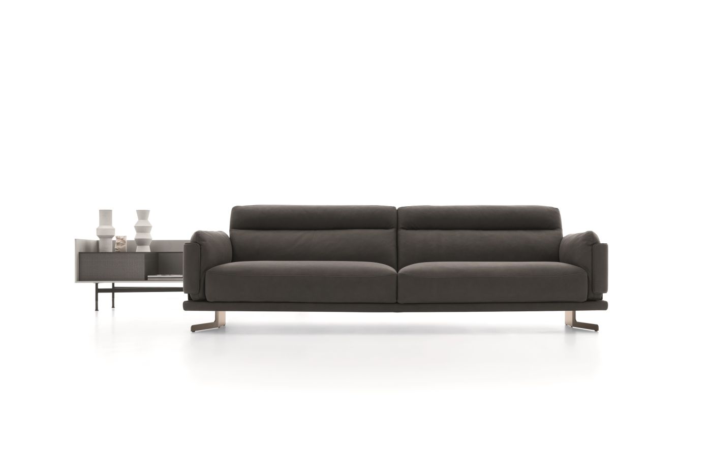 Skin redefines the sofa concept by means of a set of cushions that are contained within the side structure. In fact, the sides become an accessory and new, more comfortable and particularly soft and enveloping seats are a benefit that comes hand-in-hand with the redefinition of this sofa’s structure.