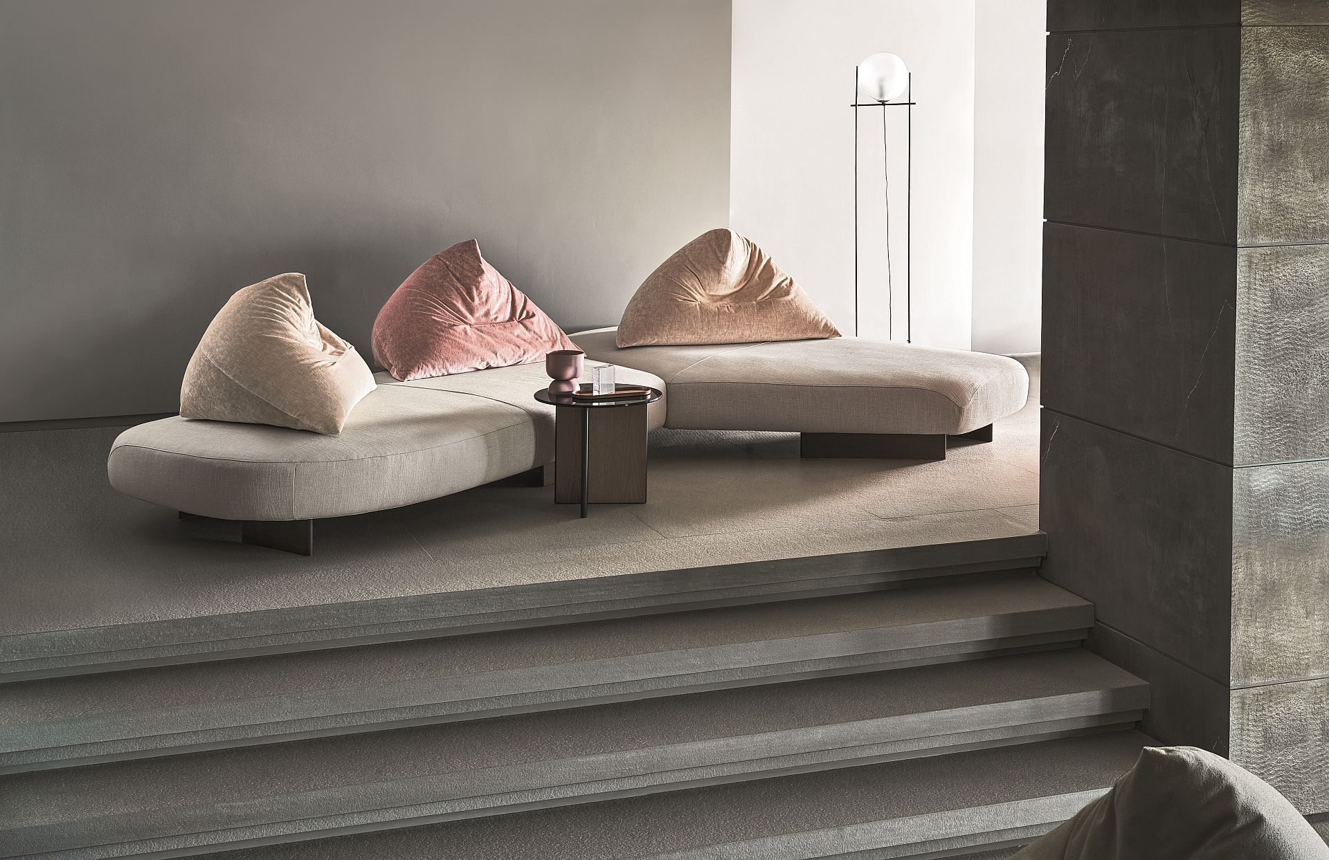 可變形的活動靠背,在您使用時可以根據您的身體進行調整,確保了一種全新的、被環擁其中的舒適感。這款沙發不存在正面與背面之分,每一面都可自由詮釋,通過超越對稱性的設計而更加突出。