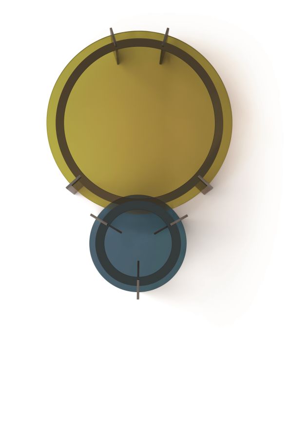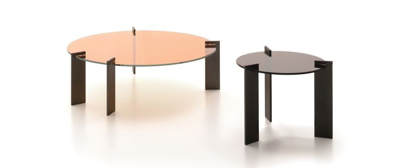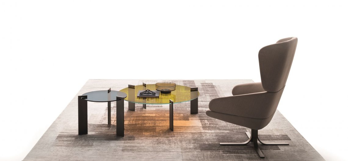 Il colore del vetro trasparente è il tema portante della serie Aulos. La struttura metallica è il più elementare sistema di sostegno possibile. Cinque le tinte trasparenti del tutto inusuali. Due altezze per due dimensioni. L’assimetria nella distribuzione delle gambe di sostegno del tavolino più grande rafforza il carattere unico di questa collezione.