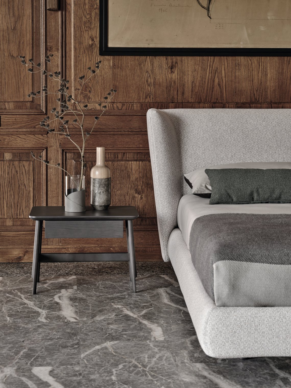 Timeless è la chiave per apprezzare Royal. Un gioco di proporzioni reinterpretate, giocate su un apparente sospensione da terra rendono questo letto un oggetto elegante e contemporaneo.