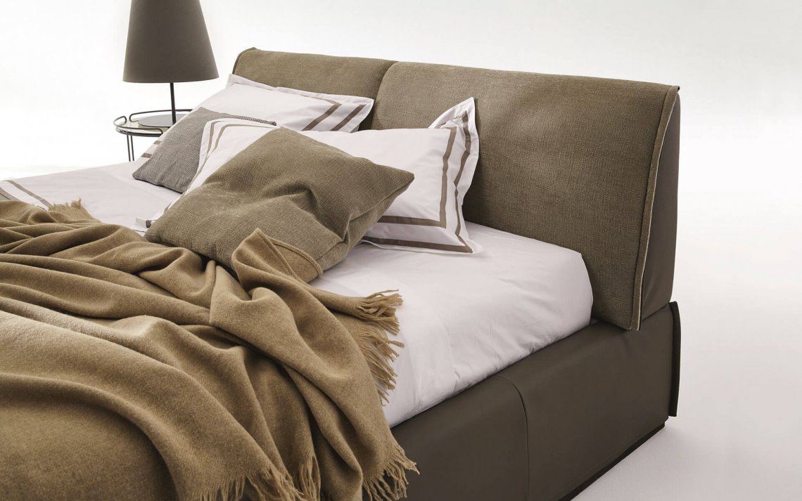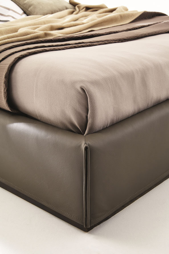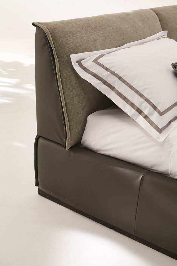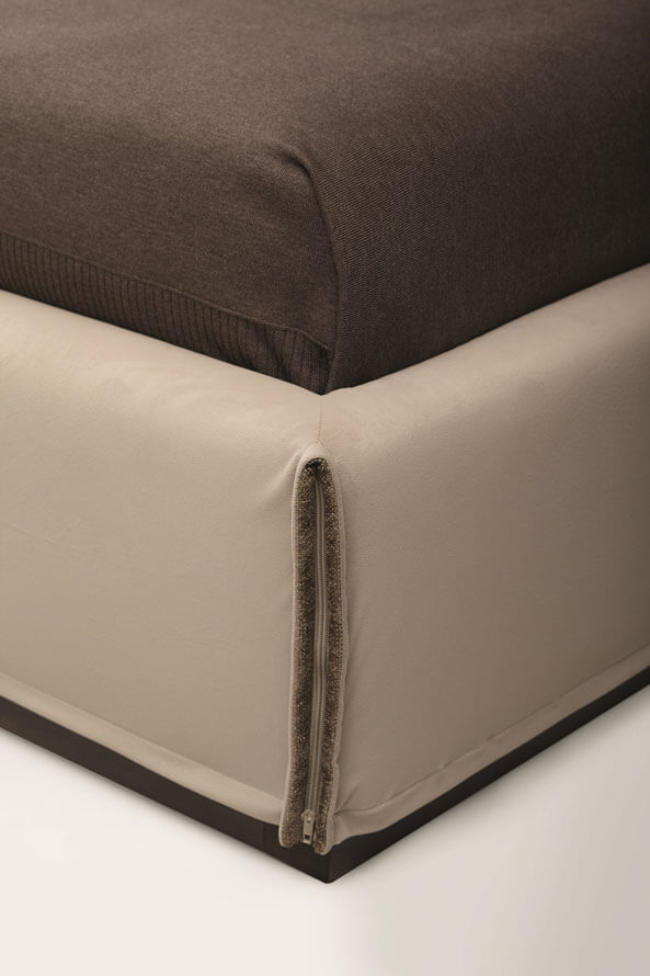 L’eleganza del letto Monolith è data dai suoi volumi importanti e dalla ricerca dei dettagli: il soffietto del giroletto si completa di una cerniera estetica, che ne sottolinea l’originalità.