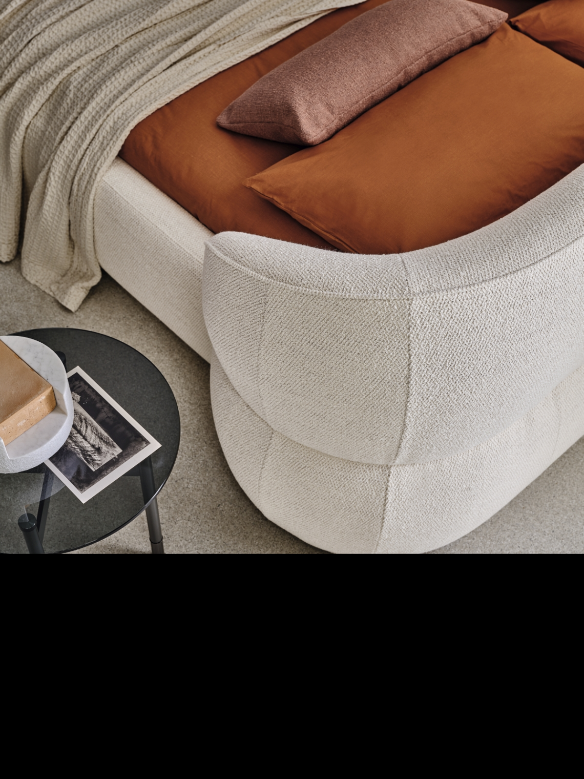 Rotondità e presenza scenica per un letto ideale nel definire una camera esclusiva. L’oggetto scultoreo si esprime al suo meglio in una collocazione centrostanza.