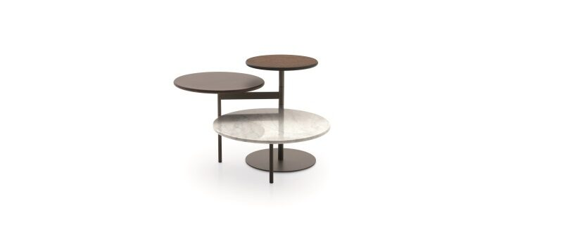Il tavolino Tris è composto da tre piani tondi che grazie ad un meccanismo ruotano su se stessi lasciando un’estrema possibilità di configurazione. La loro flessibilità consente un posizionamento laterale ma anche di servizio centrale al divano.