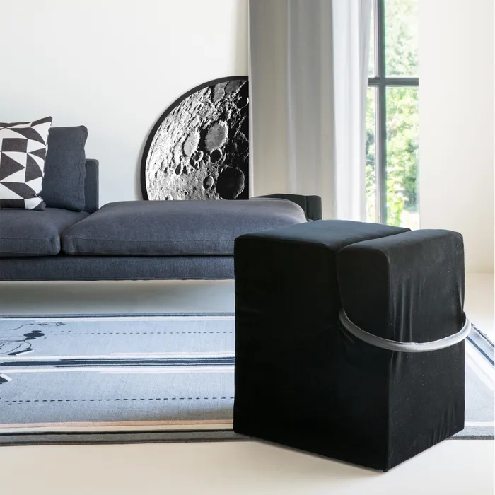 In un’unità abitativa, per il benessere sono necessari molti elementi detti “mobili” che in realtà una volta posizionati rimangono “fissi “. La tendenza di sovraccaricare lo spazio mi è sempre stata inaccettabile; quindi ho sempre lavorato al limite del necessario. – N.Vigo. La seduta “blocco” nata con questo intento nel 1970 viene ora riproposta con la stessa funzione ma con un maggiore spirito di allegria nella scelta dei rivestimenti. Buona seduta!