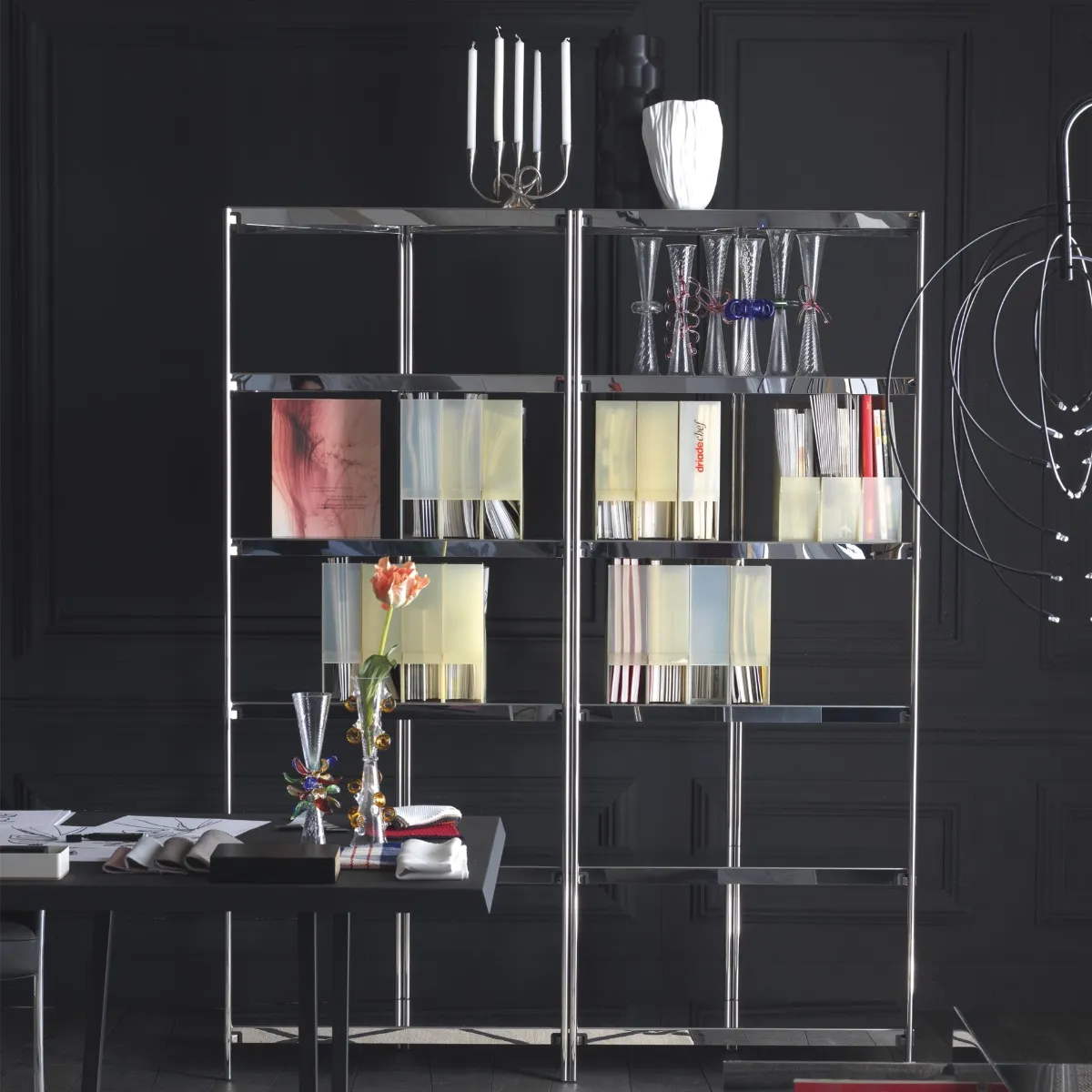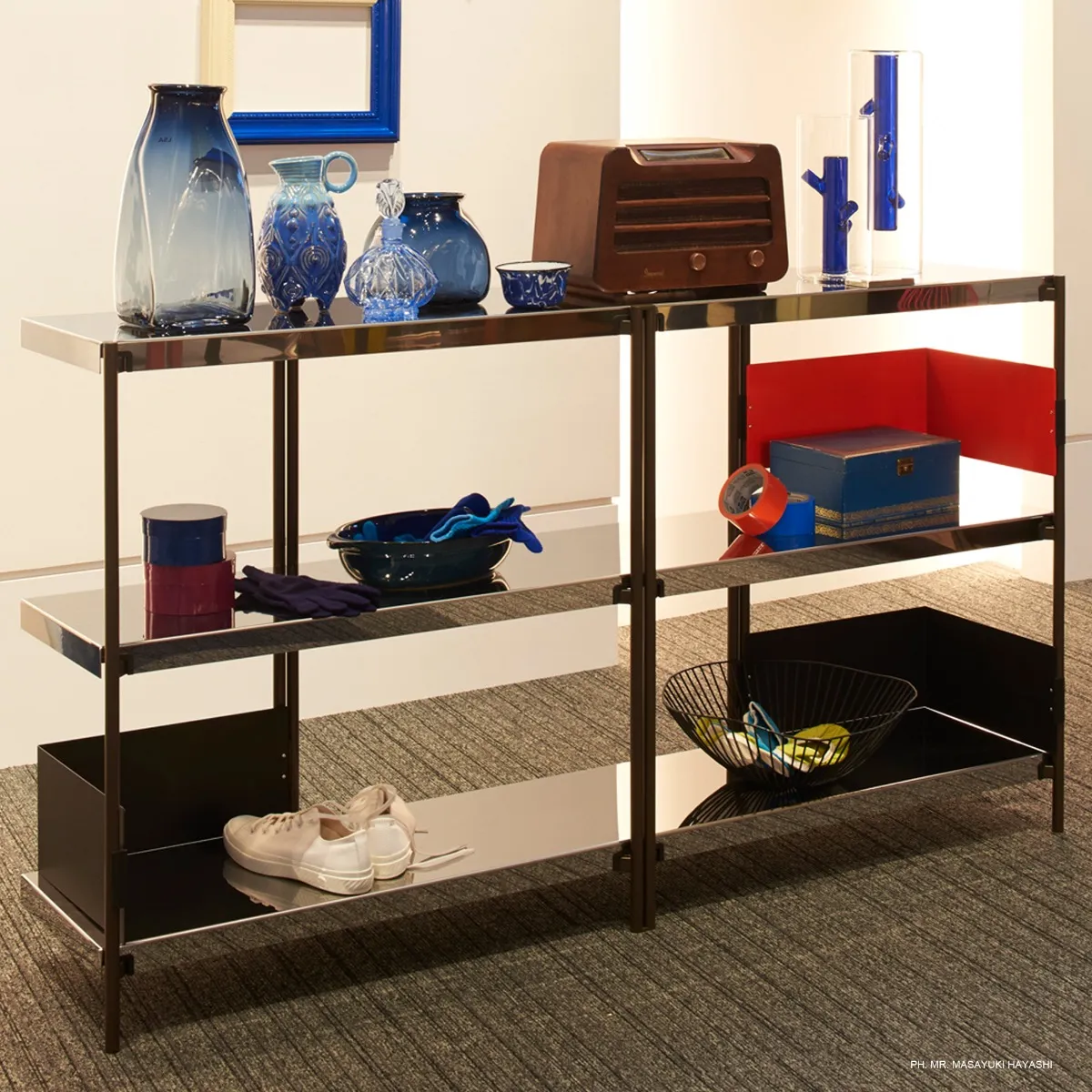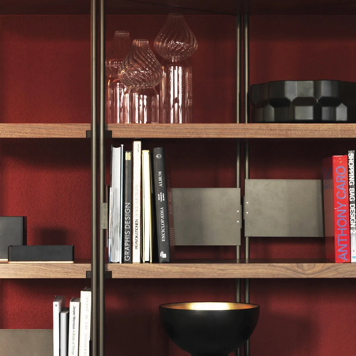 La struttura a zig-zag dello scaffale è semplice e fresca; la paletta di colori per le parti metalliche - nero, bianco, bronzo e acciaio lucido - è completata da due tipologie di ripiani in legno, in quercia e in noce americano. I fermalibri a clip sono disponibili negli stessi colori delle altre parti metalliche, oppure con la stessa finitura del legno dei ripiani. Un’ulteriore tonalità in arancio fluorescente arricchisce l’offerta dei segnalibri. Zigzag è disponibile in due diverse altezze, e si assembla senza l’aiuto di attrezzi.