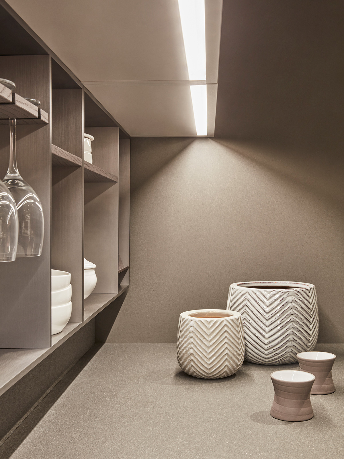 In the wall units, LED lighting can be integrated into the front of the base frame and top element of the product,