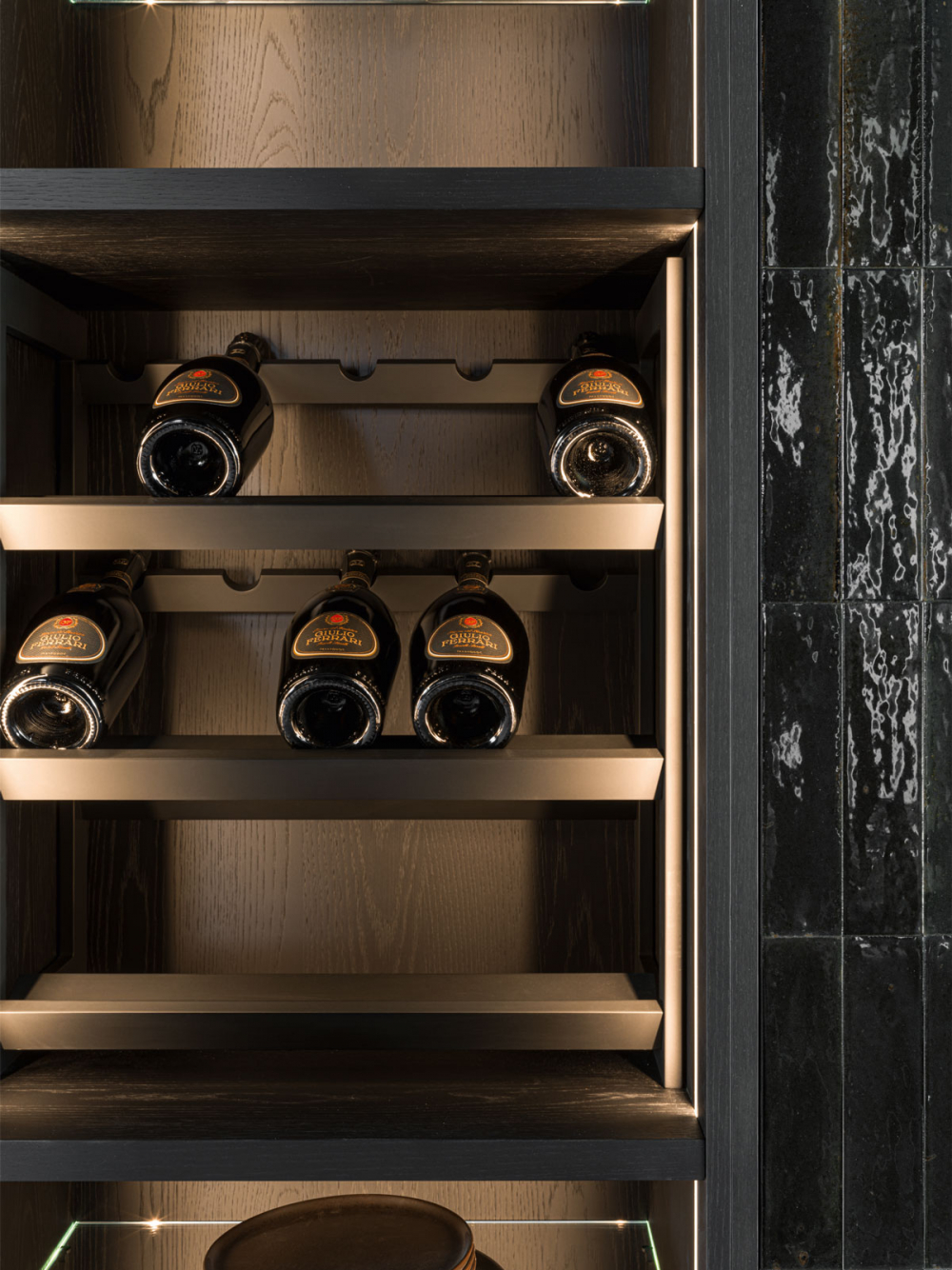 Equipped with an exclusive mechanism, it can be inserted across all Collections. The project stands out in all its exclusivity with a special version, a precious dress that shows Molteni&C|Dada's taste for the refined: a backrest with two concave side supports, between which a second backrest is inserted, to which Wing shelves can be added.