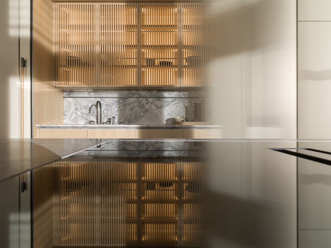 Tivalì, the built-in kitchen for all spaces designed by Dante Bonuccelli in 2004, precursor of the “Everything in a Small Space” concept, evolves in the Tivalì 2.0, with the introduction of Post, the new ergonomic handle in solid wood, together with the Operative Columns 2.0.