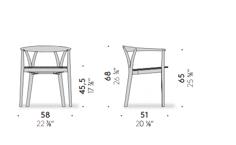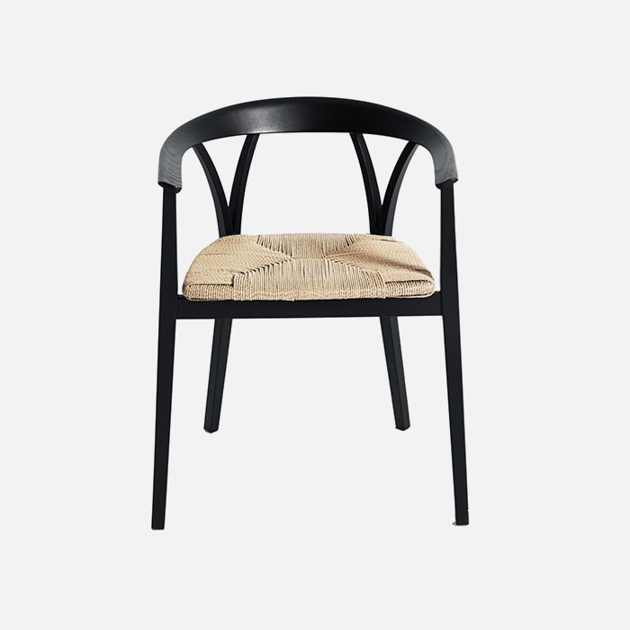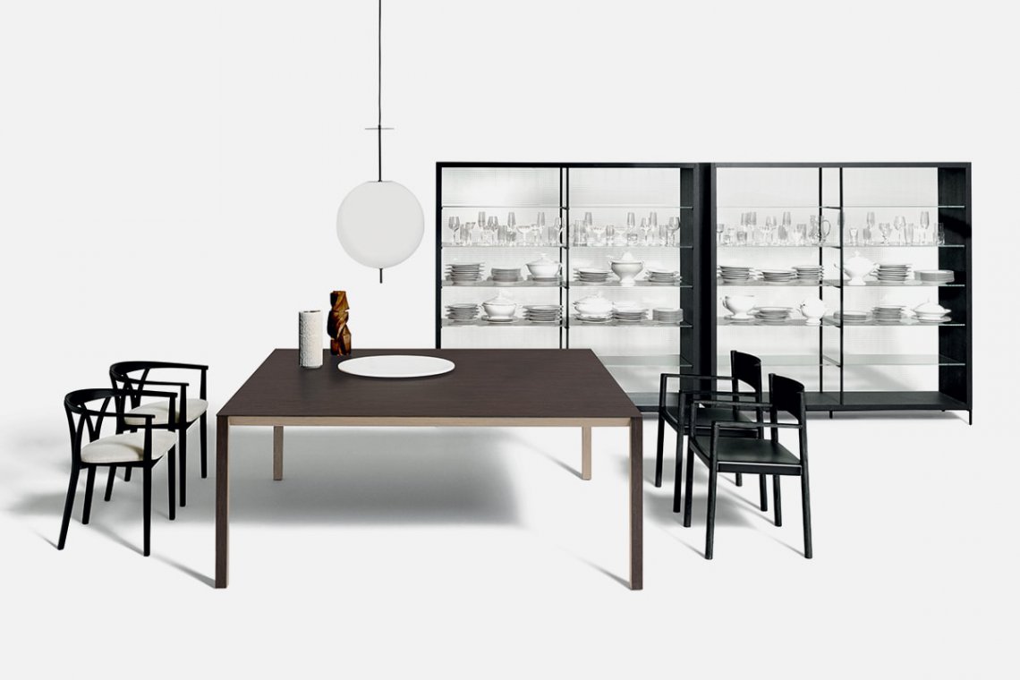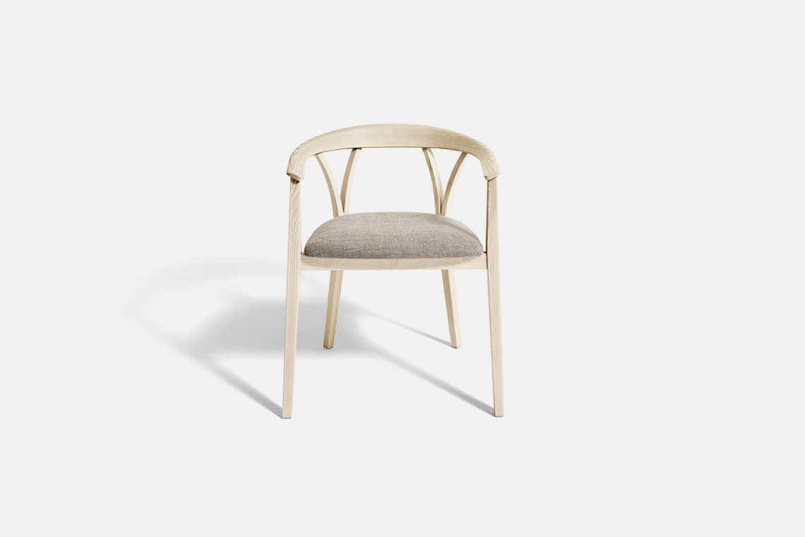 This chair by Michele De Lucchi echoes the lines of the more traditional Donzella. More agile and lighter, Donzelletta interprets the V motif of the original backrest by giving it a sleeker, more contemporary look. The structure is in solid bleached or black ash and the seat comes in woven straw or is covered in fabric or leather.
