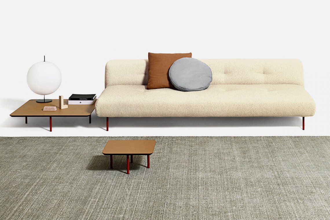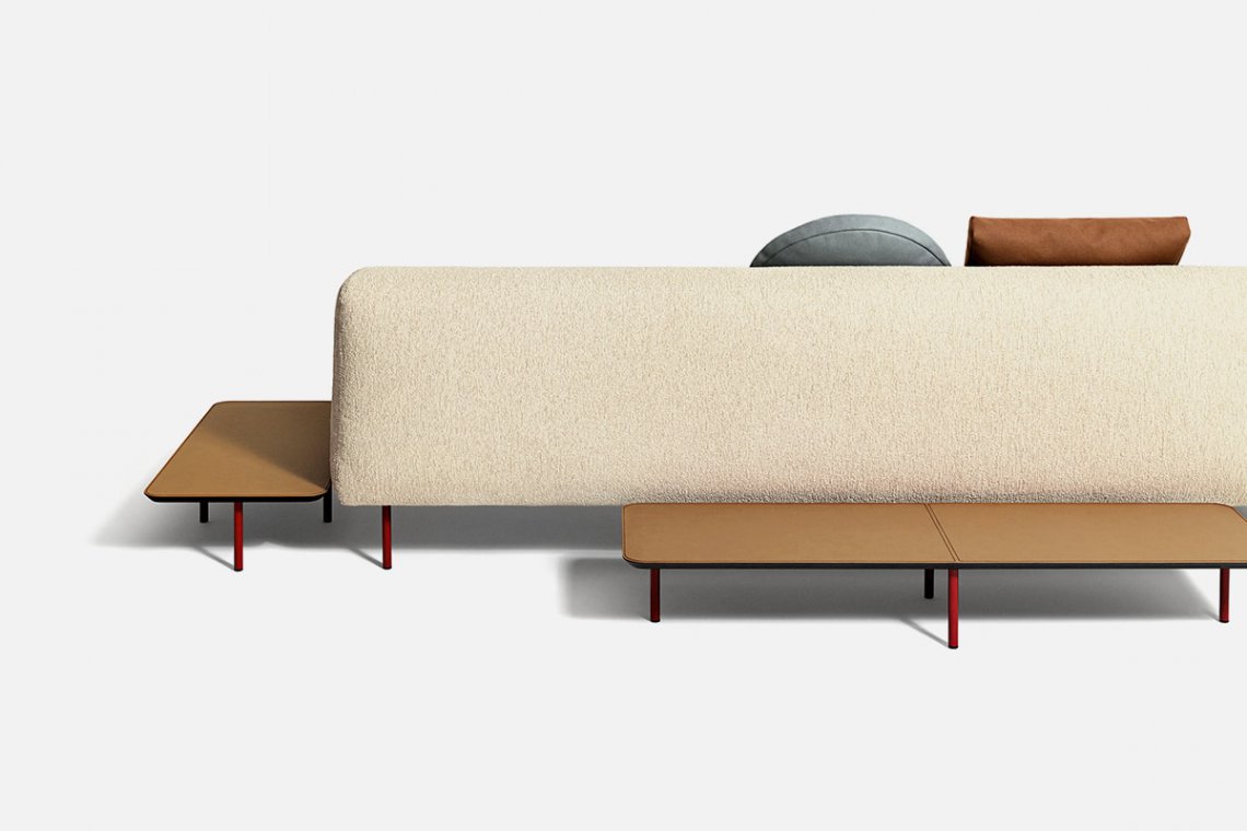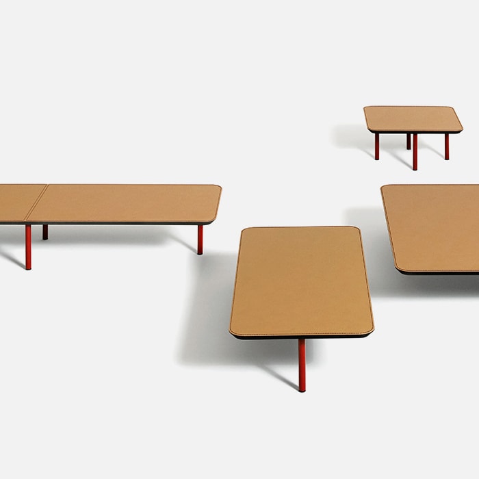 Erei’s domestic landscapes, formed by straight lines and different heights that interact with one another, have reassuring, regular edges. Elisa Ossino’s project with a modular seating system, bed and accessories also includes a family of square or rectangular accent tables with black, natural leather and smoky oak finishes. They are perfect for completing the living room and bedroom.