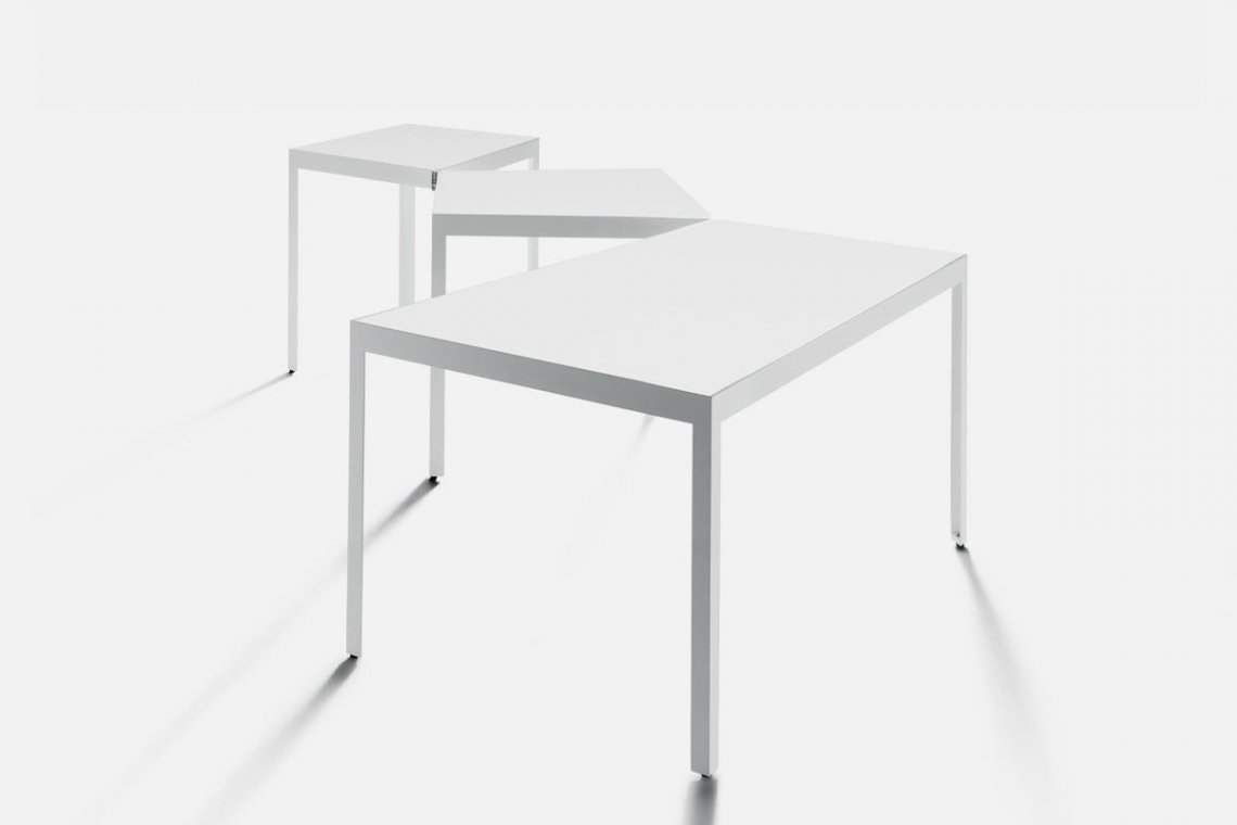 A mutable soul with a dynamic character. Campo D’oro is a table that modifies its shape to interpret different needs in the home. The project is just like these fluid, ever-changing spaces. When closed, the table is square in shape, but it opens to create new configurations and ultimately becomes a long trapezoidal surface. That’s why it is also the ideal solution for the office, a study and any place that needs flexible furniture able to satisfy the needs of a modern work force.