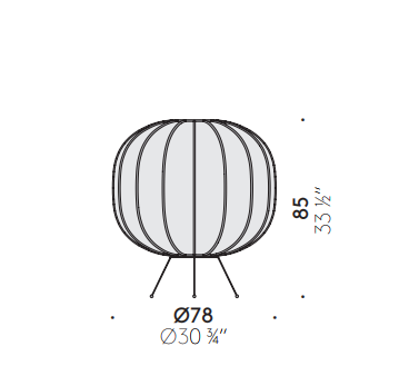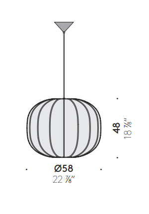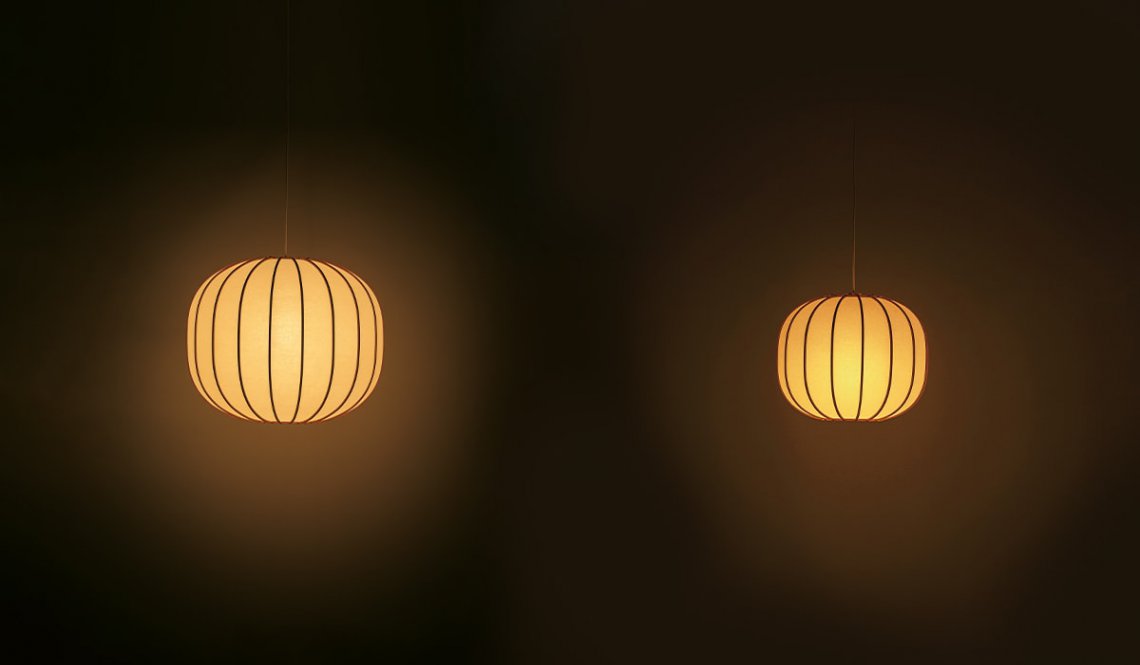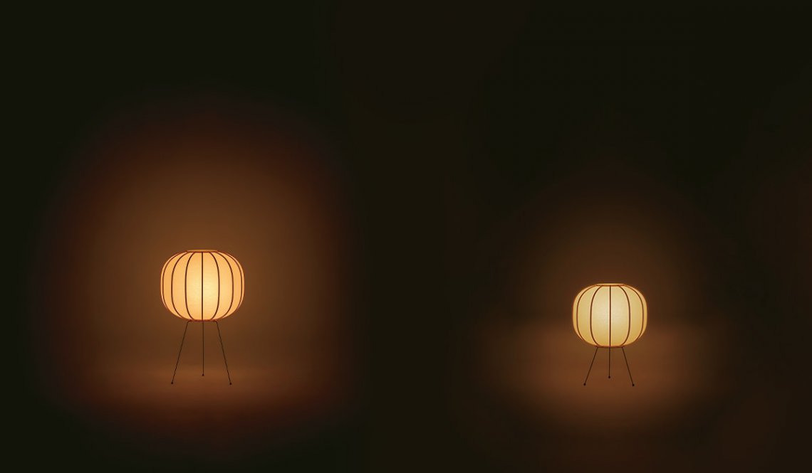 Available in a hanging or floor lamp version, it transforms light into poetry that merges strength, stability and grace, recurring elements of Japanese tales.