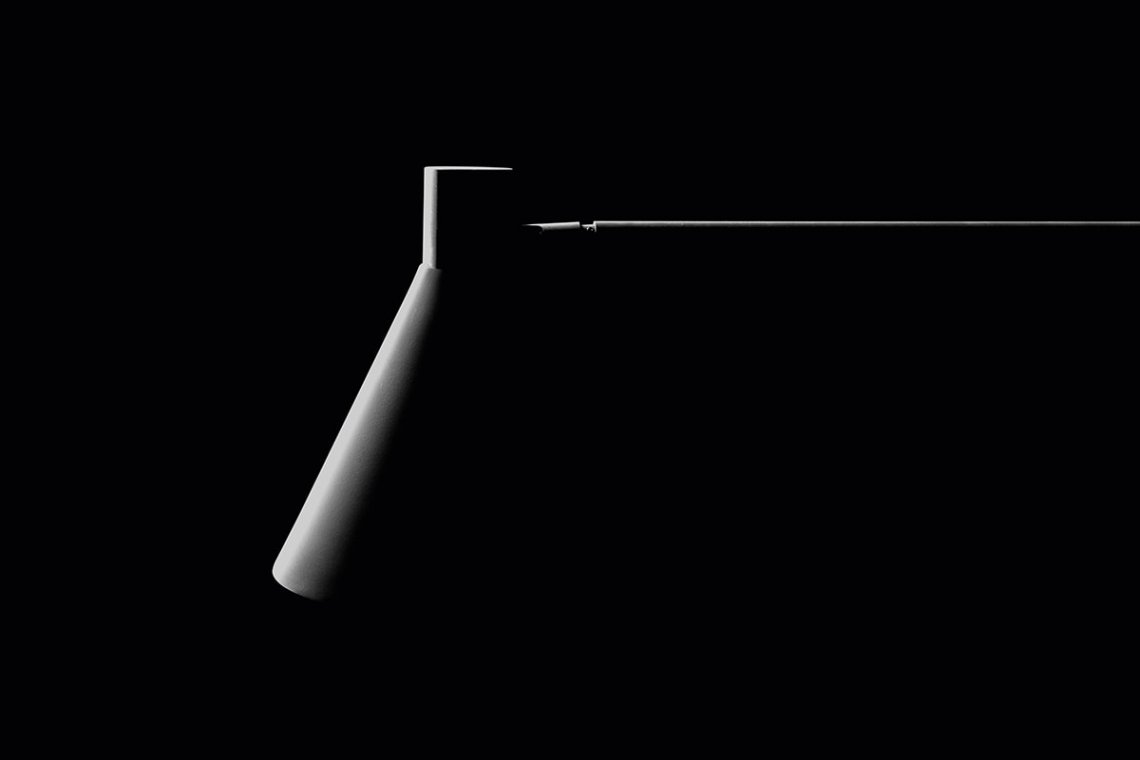 The graceful, balanced graphic line is by Elisa Ossino. Nota, in fact, is the lamp with a poetic yet functional design. The floor lamp has two small tables on the pole which can be used for holding a book or a cup of tea. The light source can be positioned wherever needed, leaving the cone of light open to personal interpretations of every space.