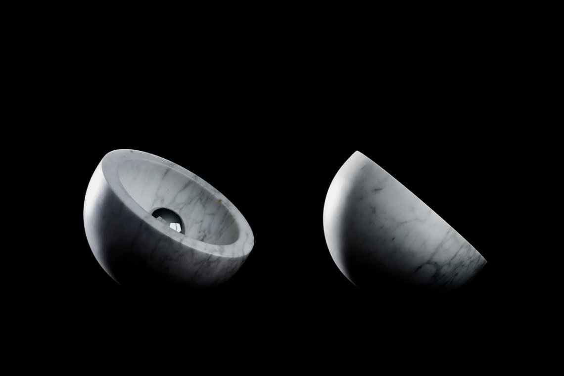 The perfection of a half sphere, the textural design and astral moods. The secret of the Tsuki table lamp by Japanese designer Naoto Fukasawa lies in its simple design and choice of materials. Available in Calacatta marble or light grey concrete, it is functional, efficient and discreet. It can be used alone or positioned in a series, creating striking cones of light.
