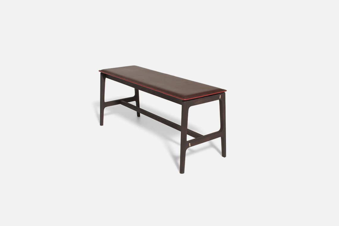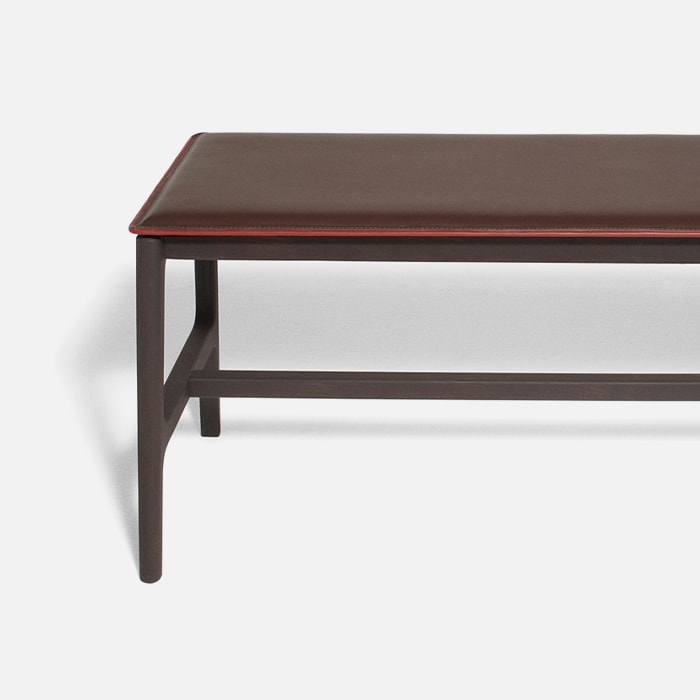 The same seams are found in the furnishing accessories such as the leather benches and trays.