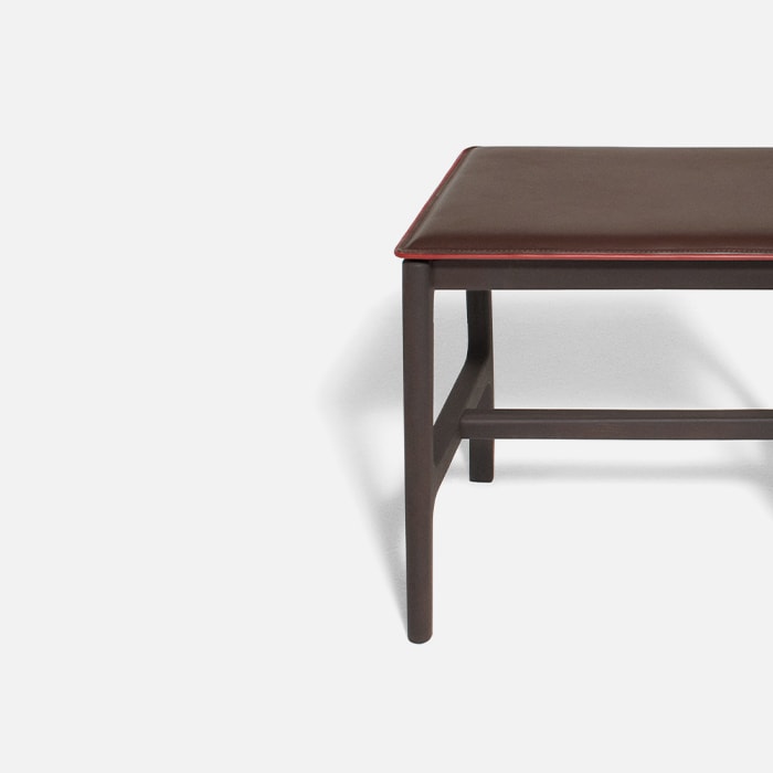 The same seams are found in the furnishing accessories such as the leather benches and trays.