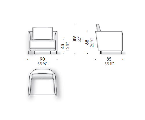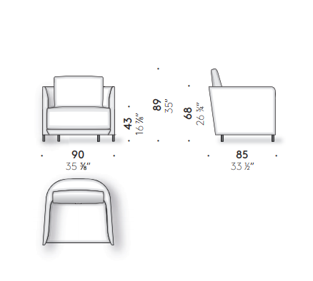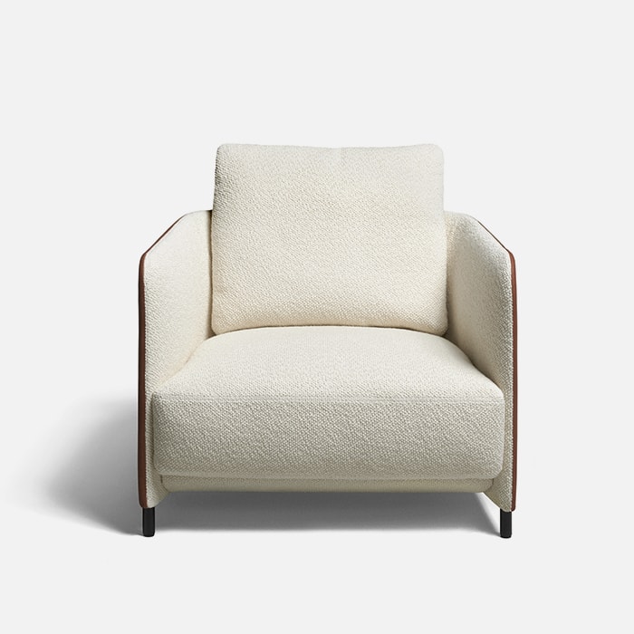 A variation on the theme: the compact and rounded sections of the Blendy collection are completed with a sofa and armchair that have been slightly restyled in the proportions. They have the same line as designed by Omi Tahara, but are distinguished by the height of the seat, the smaller feet and the single cushion. The result is balanced and cohesive.