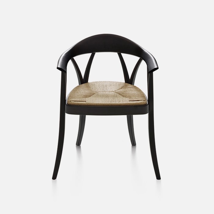 The traditional chair with woven straw seat, reinterpreted by designer Michele De Lucchi. Donzella is the natural or black lacquered solid ash wood chair that is inviting, naturally elegant and extremely comfortable: “This chair takes advantage of the beautiful joint that was invented by an anonymous craftsman many years ago to solve the point of connection between the seat and legs”. It is a tribute to the excellent craftsmanship of a project that is both comfortable and decorative.