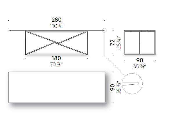 The main motivation behind the sketches of the T.?T.?A.? Table was to create a solution for a new table frame, based on an entirely generic structure.? Studies on Josef Albers – especially the optical experiments inspired the graphic expression.?