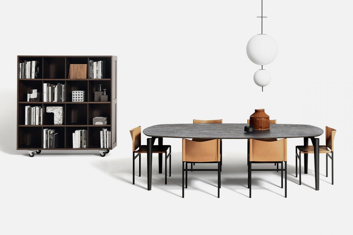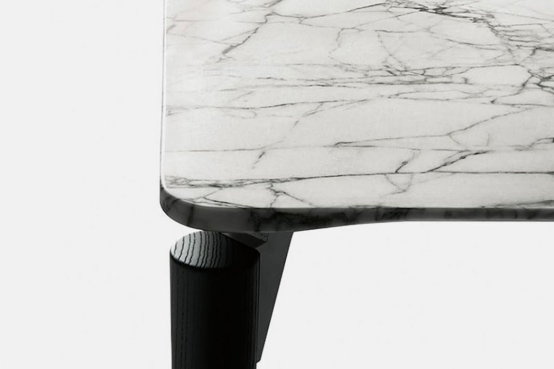 This piece by Achille Castiglioni is a great design classic. The construction details of Tavolo ’95 are hidden from view and its materials are luxurious and refined. The marble or wood top appears suspended above the sturdy, well-designed base due to slender support brackets that create this particular visual effect.