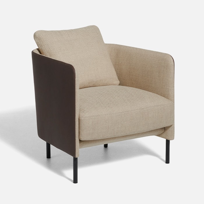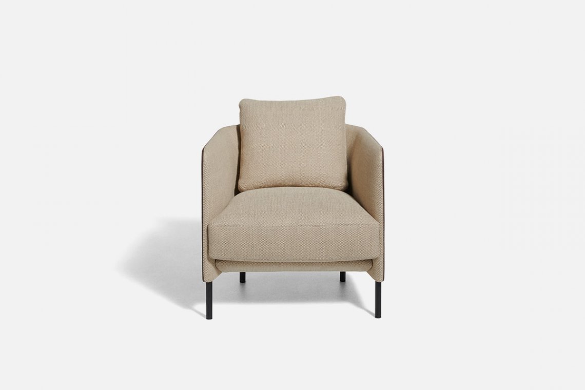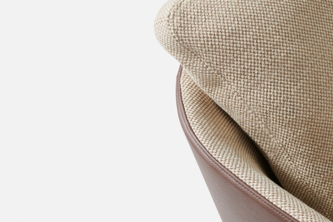 Blendy’s world is ready to take on different colours and fabrics in every possible variation of the project: Blendy, Blendy Lounge, Blendy Movie and, from this year, Tiny Blendy. The recognisable lines of the armchair’s 2022 version feature a new stylistic design running through it, the deep and comfortable structure has been resized and reproportioned relative to the more cumbersome, previous dimensions, packing Tiny Blendy with improved versatility for living spaces, even as a pair. The common thread remains the same: a design capable of significantly altering a living room’s atmosphere through the considered choice of the leather/fabric combination for the external and internal upholstery.