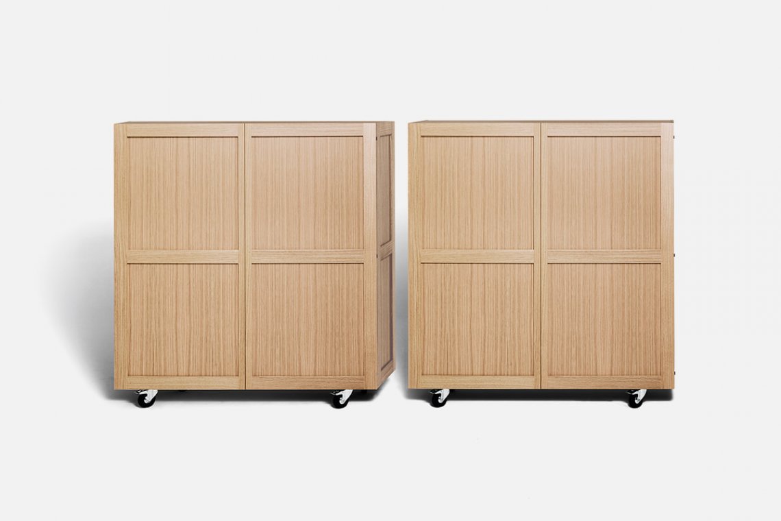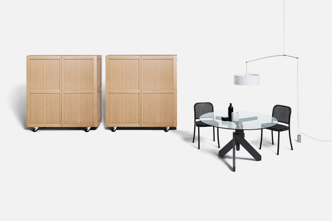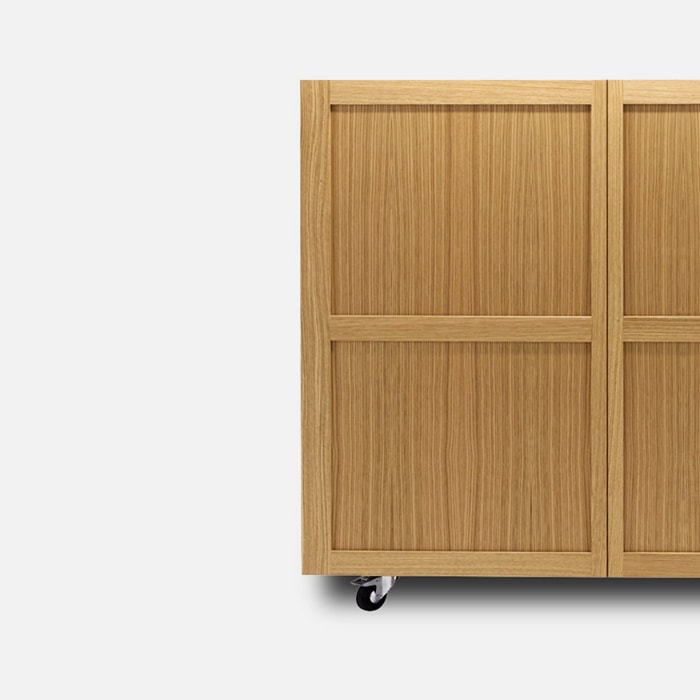 Contemporary and minimalist yet extremely solid. The Shigeto sideboard designed by Vico Magistretti has a solid natural oak structure on chromed swivel wheels. Square and geometric, it organizes the glassware and dishware at home with shelves and dividers that are also perfect when on display, combining practicality, versatility and discreet elegance.