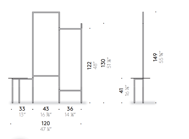 This light metal structure, jointed and slender, frames everything hanging on it. A valet stand but also a divider, it has horizontal bars at different heights and a round surface to be used as a stool or small table. Garderobier’s discreet elegance keeps everyday things neat and tidy.