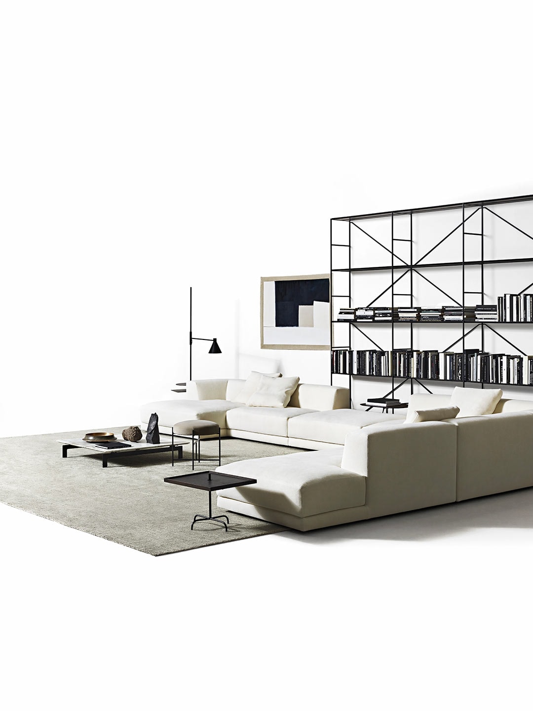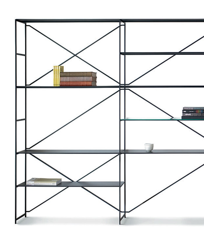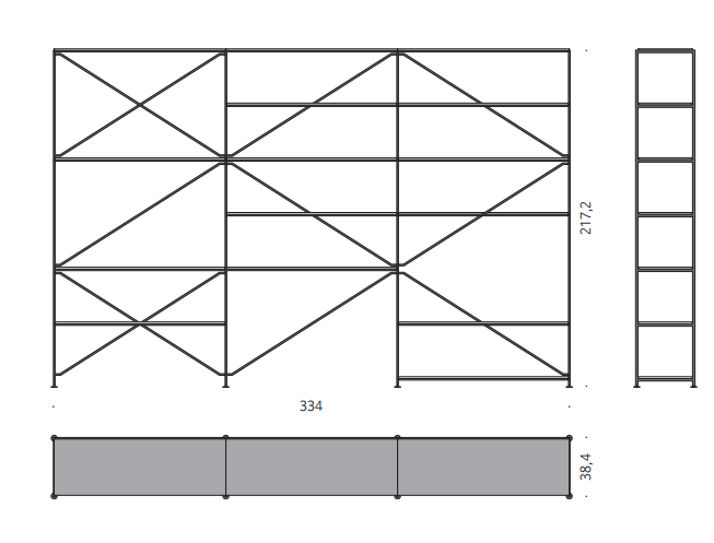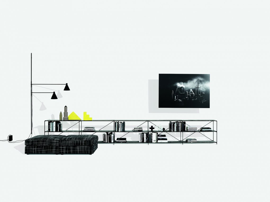 Only a handful of components, that connects in numerous ways, all attached by using the universal screw; “R.?I.?G.? joint”, creates this diverse shelving system.? An uncompromised choice of materials and the graphic stabilizing system ensures a stunning stability.?