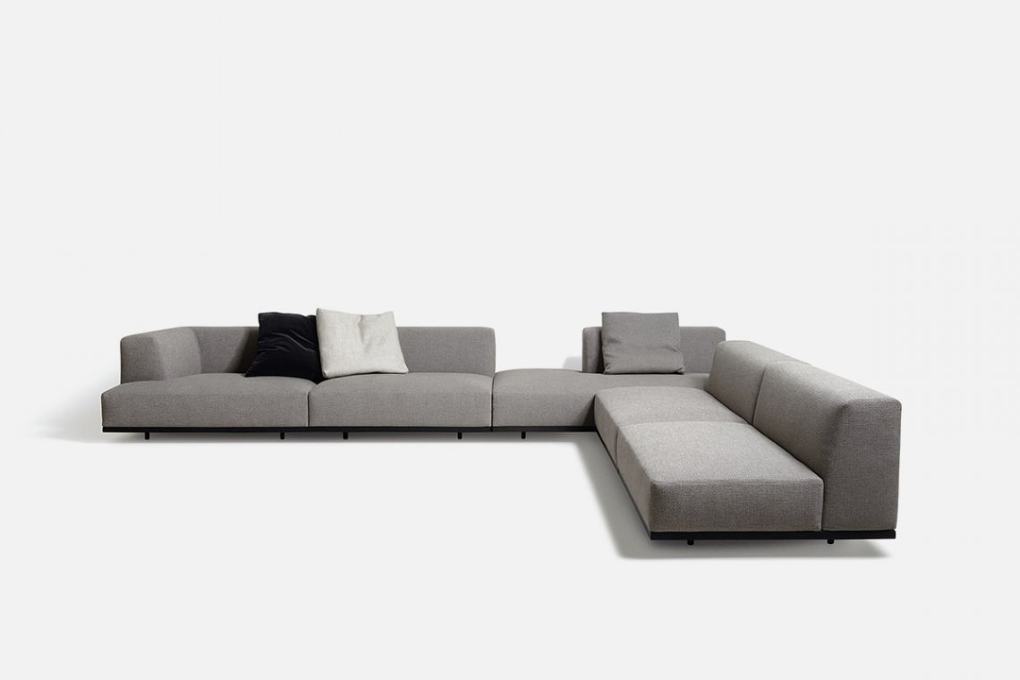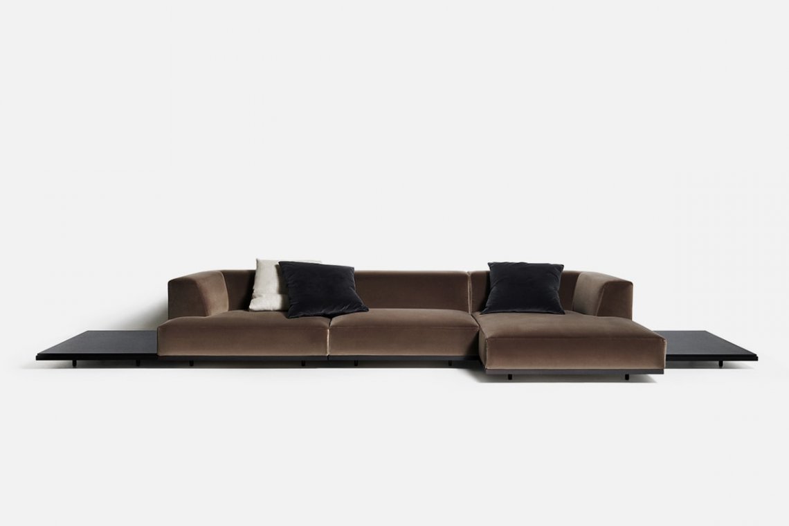 The prominent proportions of Alberese Wood offer a reassuring presence without coming off as bulky. It marks the 2021 evolution of Alberese. Framed by a Dark stained oak structure, Alberese Wood is a nod to nature and the landscapes of Maremma with its soft contours that delicately capture the perfect lines of the frame. The sofa continues laterally beyond its endpoints, modeling itself into molded, small square or rectangular tables that are available in a free-standing version with tabletops in Dark stained oak wood or marble. The system shares a deep seat done in single modules, as a corner sofa or as a chaise lounge and pouf – design solutions that are different each time.