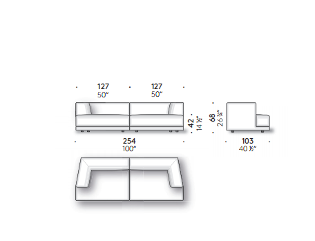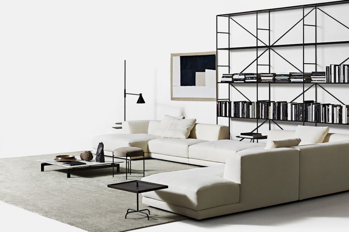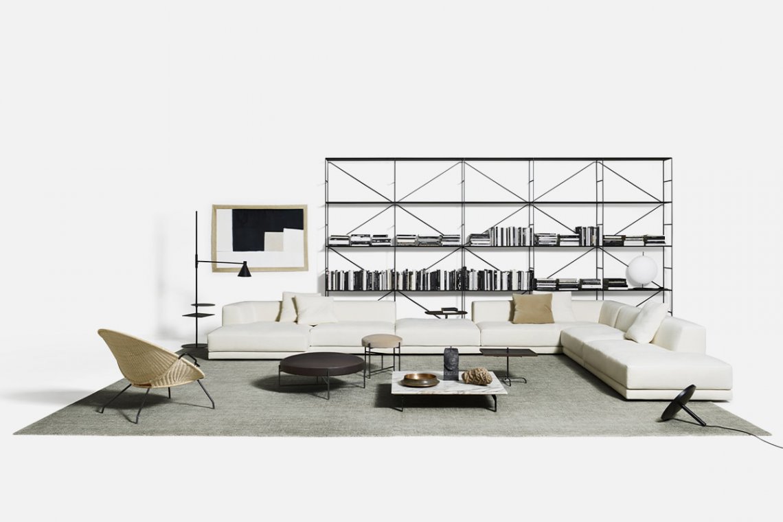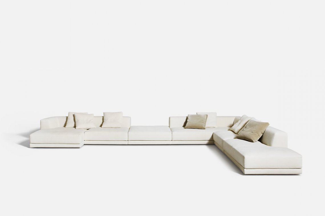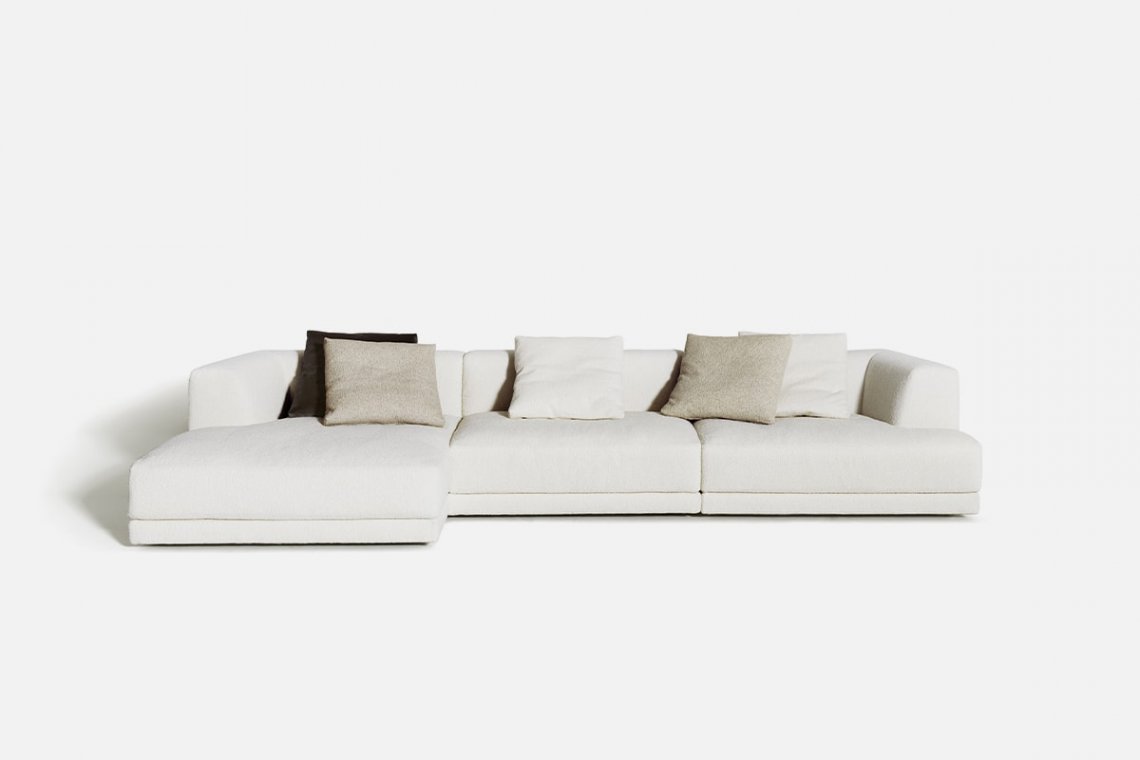 Proportioned, linear and flexible. Alberese Sofa is the latest modular project by Piero Lissoni for a welcoming, personal and contemporary living space. The collection of upholstered furniture has angled armrests for relaxing, reading and spending time together. All the elements of the system — single and corner units but also a chaise longue and pouf — have deep seating and can be used to create different solutions perfect for everyday stories, big and small.