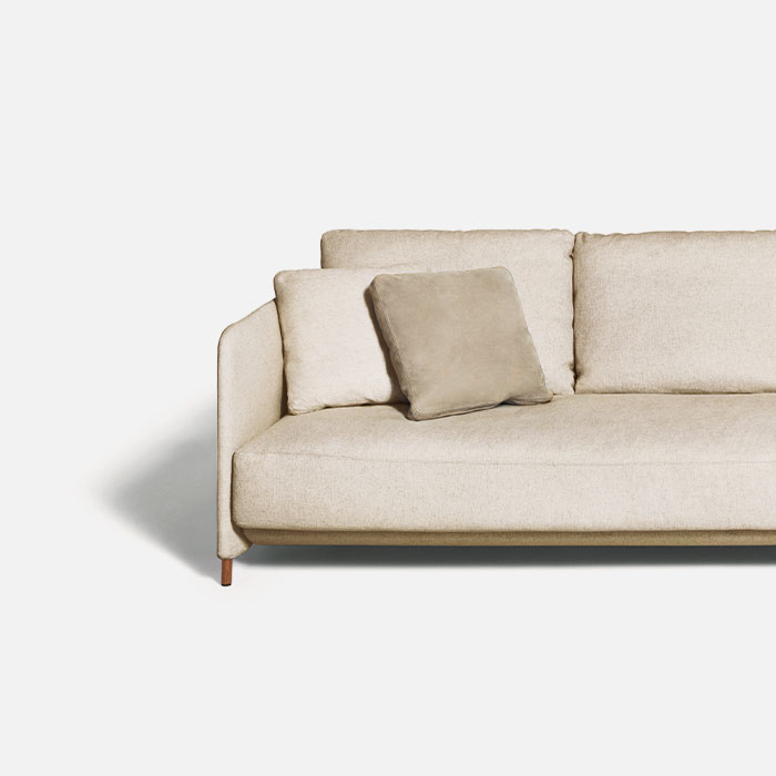 A variation on the theme: the compact and rounded sections of the Blendy collection are completed with a sofa and armchair that have been slightly restyled in the proportions. They have the same line as designed by Omi Tahara, but are distinguished by the height of the seat, the smaller feet and the single cushion, which in the Movie version comes in two lengths. The result is balanced and cohesive.