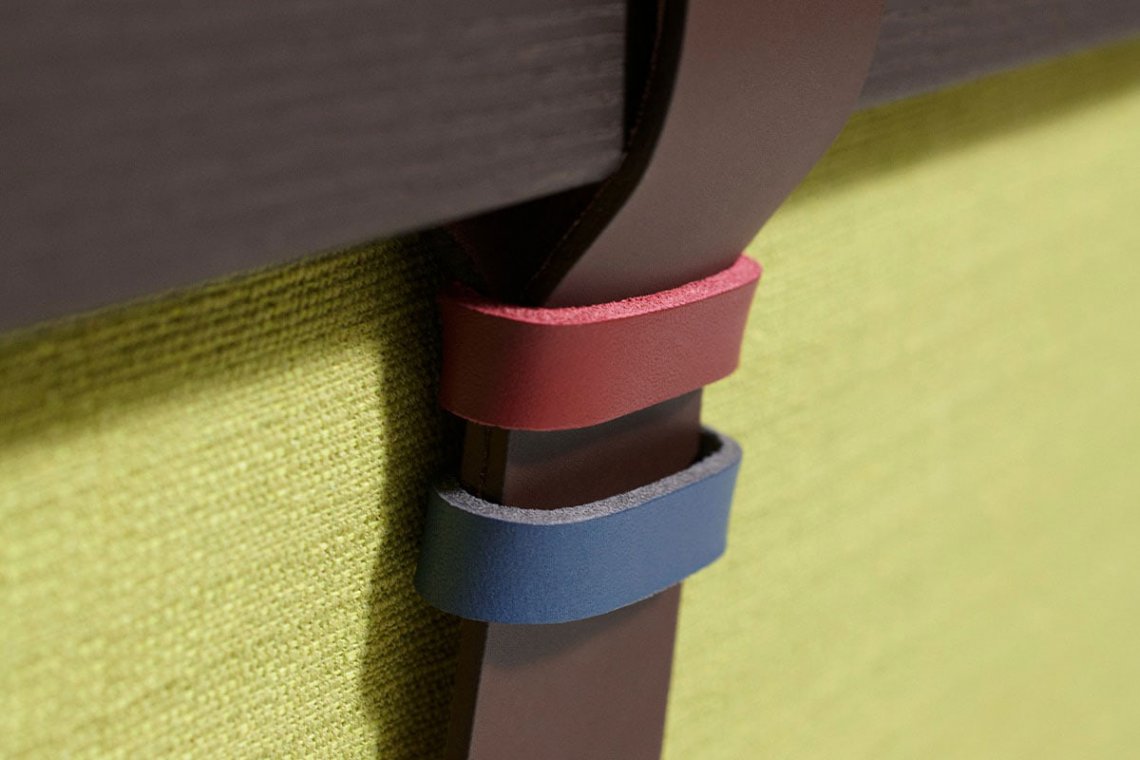 Leather straps, which bind to the structure to become an integral part of the design, are another key element, with minutely coloured details. Functional leather pockets are also hooked onto the finely rounded armrest with its pleasurable ergonomics and tactility.