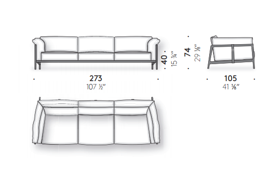 Sofas, armchairs and pouf are marked by contrasting stitching that evoke sartorial know-how.