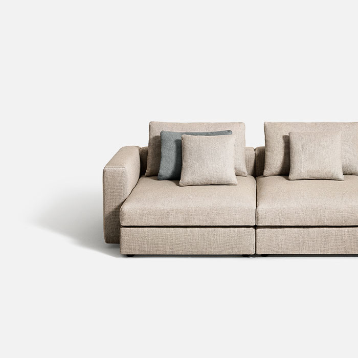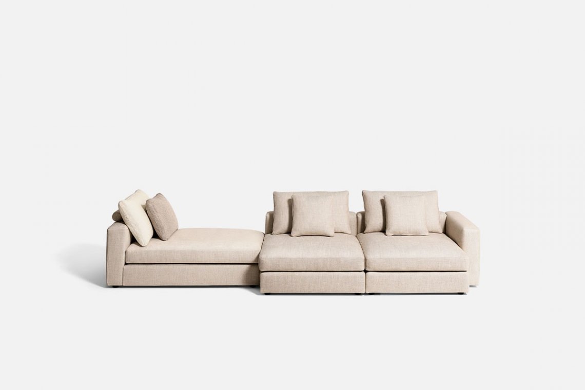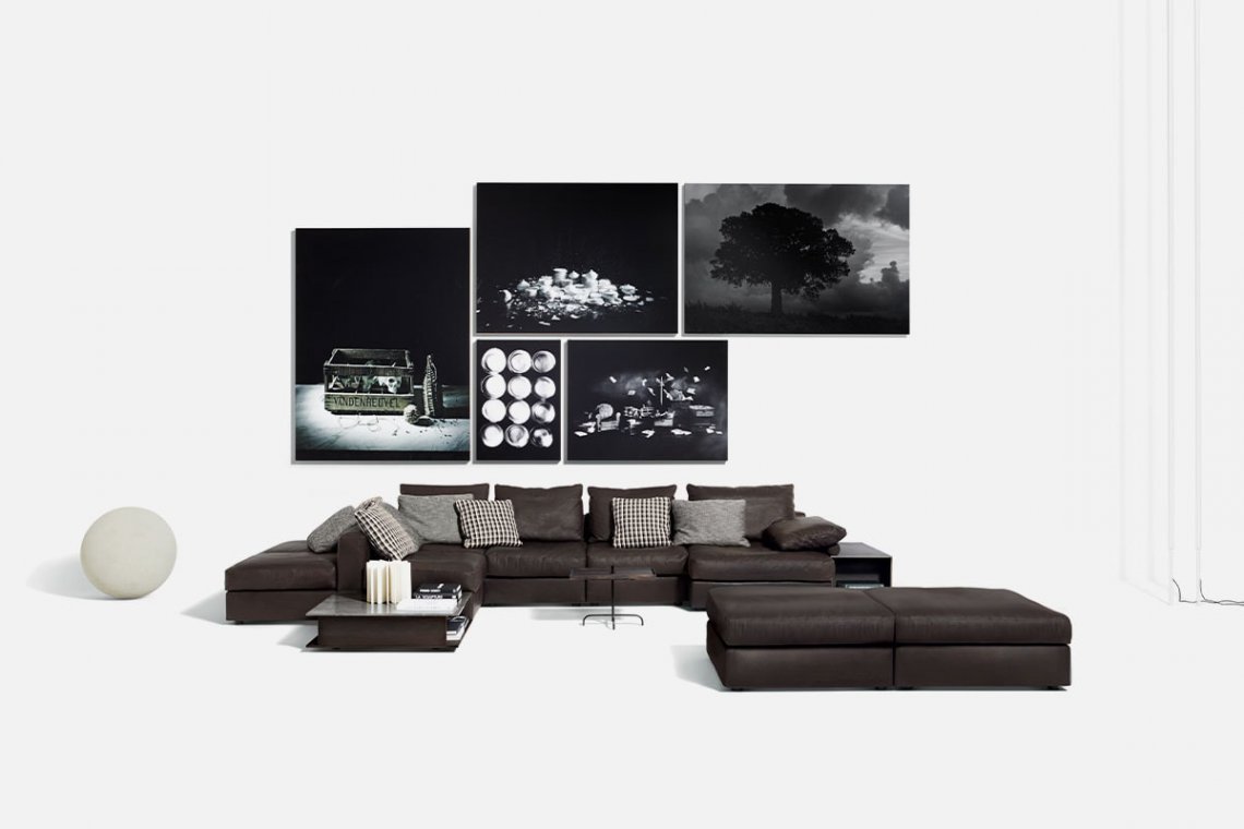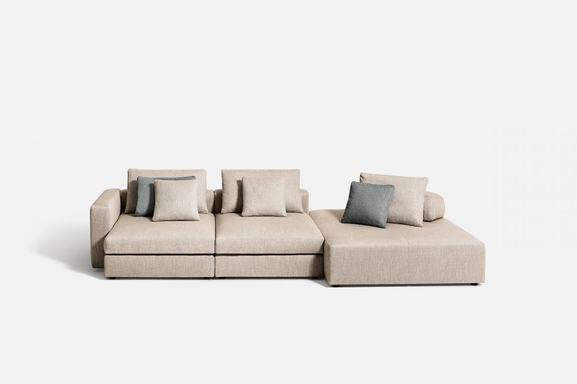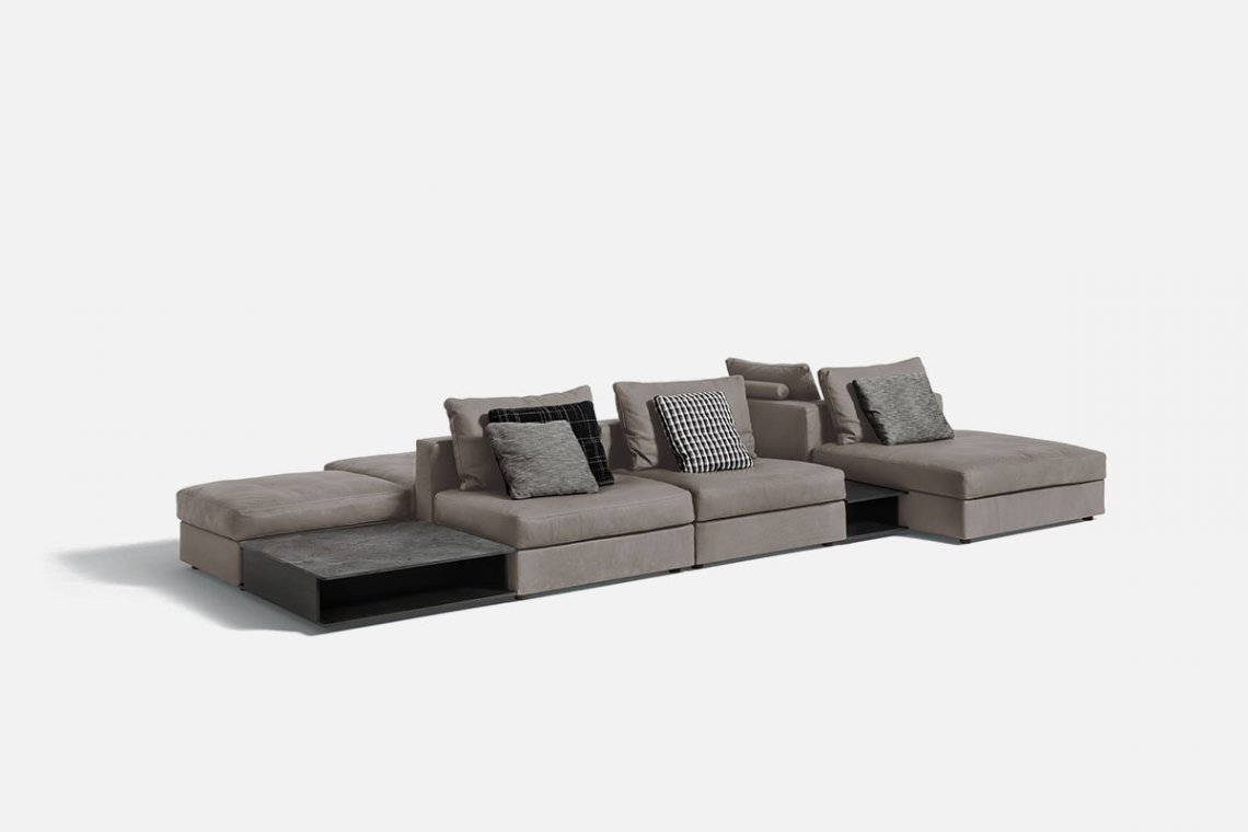 It fits perfectly into any setting because it is designed to form new shapes to suit different needs of space, habits and hospitality. Mosa?que, designed by Piero Lissoni, is the most flexible modular system around: it has modules in different sizes, depths and lengths. It can be placed against the wall or stand at the center of a room, like an island or platform. The system can count on wood console cabinets used as armrests, marble or metal tables, corner sections, chaise, daybed, a large pouf and lots of pillows with different padding.