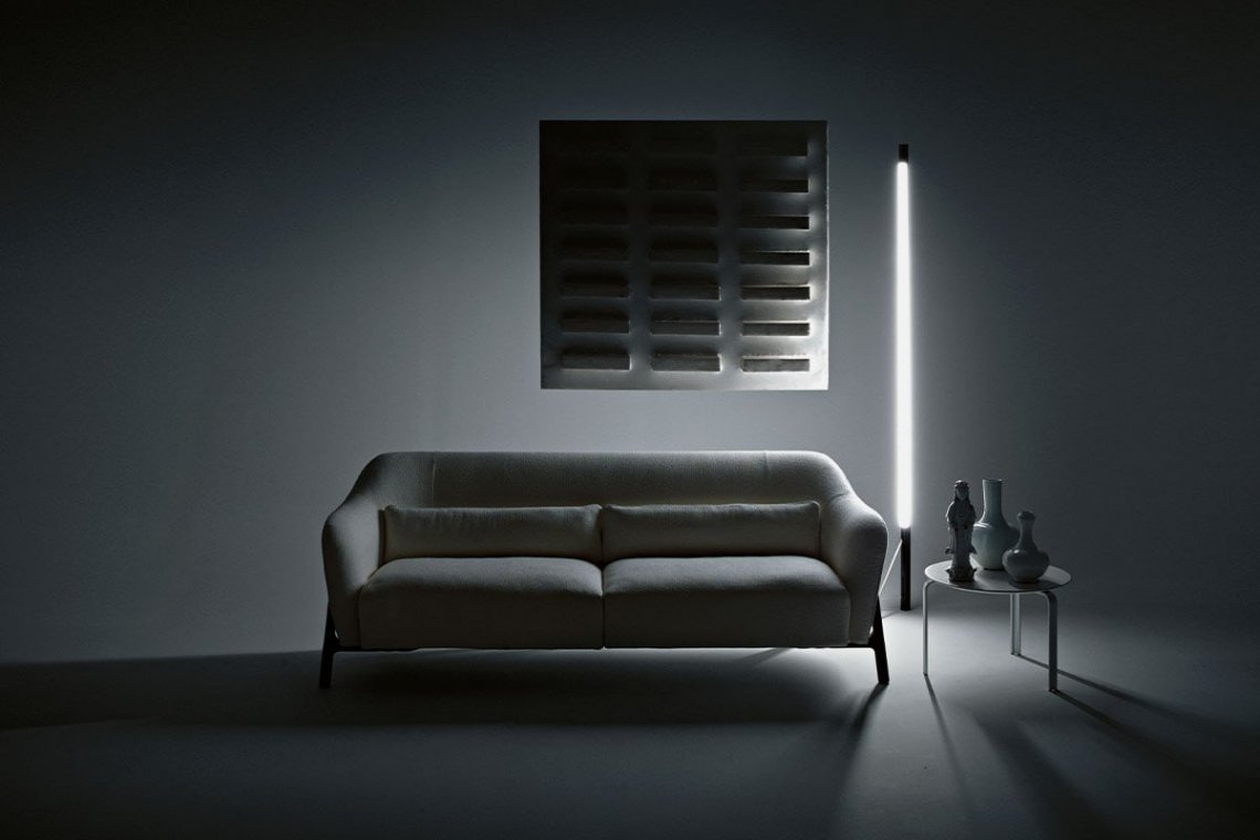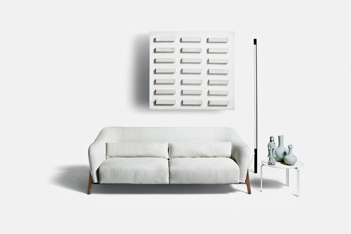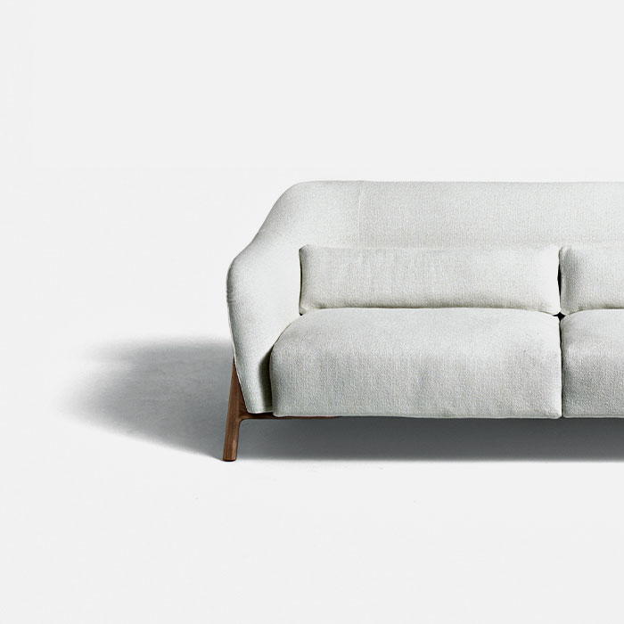 French designer Philippe Nigro conceived the Pilotis project, in which the structure of the sofa is clearly the protagonist. The inclined solid wood legs support and give stability to the seat and back, while the shape of the padding is soft, rounded and compact. Pilotis is a welcoming space, perfect for creating a cozy corner for relaxing and reading.