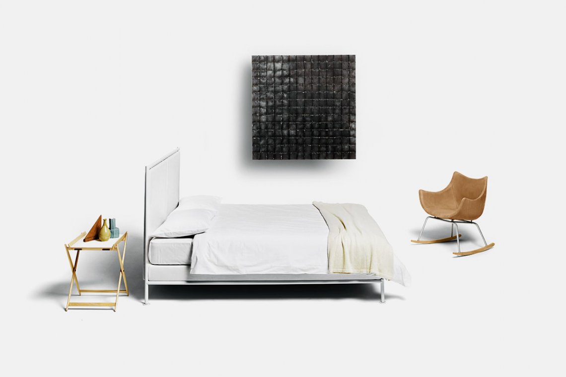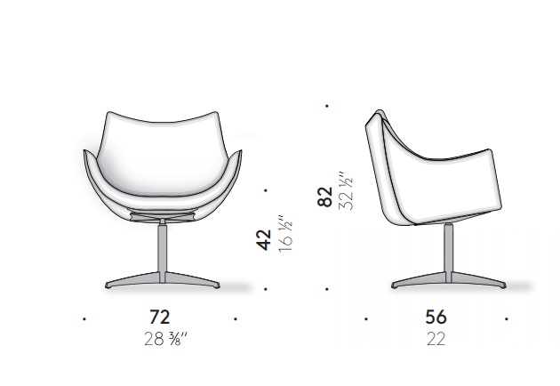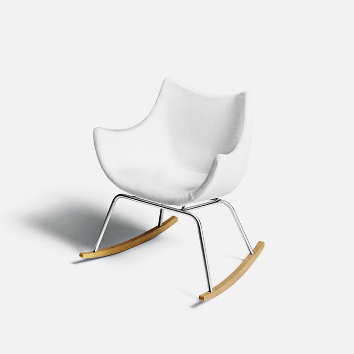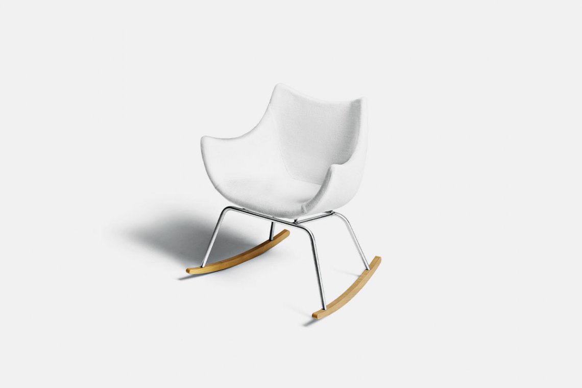 A distinctive curved line traces the silhouette of the Basket chair. Designed by Vico Magistretti with a wrap-around back and visible seams, it can be covered in fabric or leather. Basket is a quick-change artist: the version with a rocking base is perfect for reading in a corner of the living room or the bedroom, while the dynamic and efficient swivel base makes it a practical, attractive solution for the office.