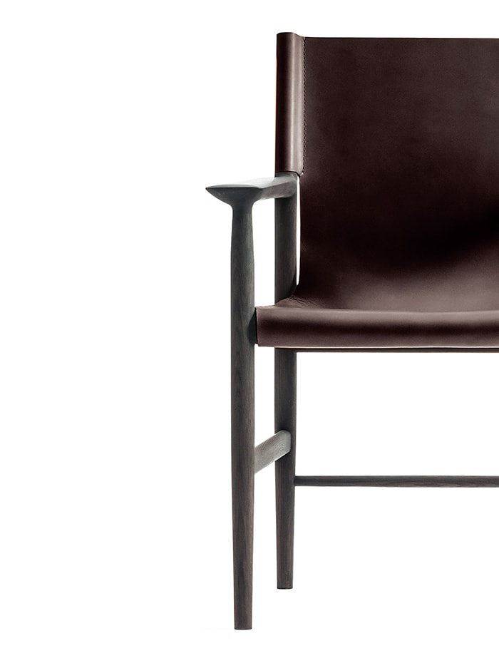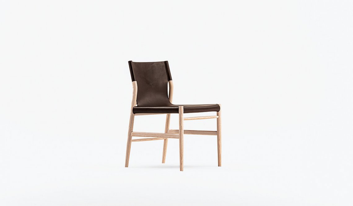 The seat comprises two layers of thick tanned leather, stitched together to form a single sheet. This process is implemented in Toyooka, Hyogo Prefecture, which is renowned for the manufacture of bags. Sunset chair offers an enjoyable sitting experience thanks to its delicate balance ensured by the optimal tension of leather. As a natural material, the tanned leather seat will eventually adapt to the body over time.