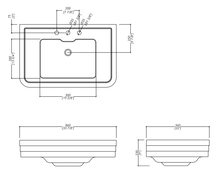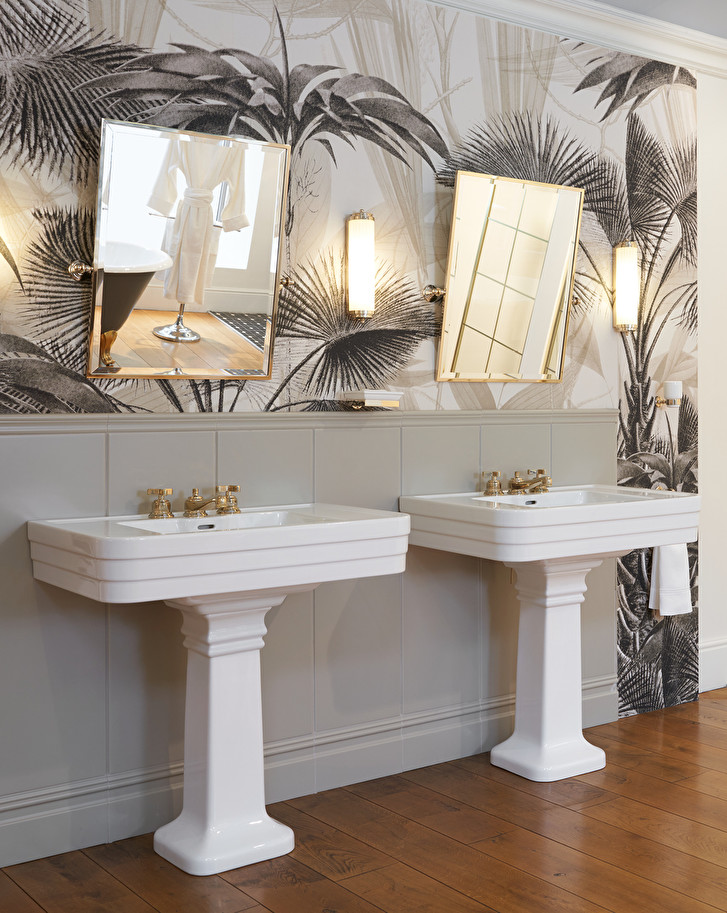 A large and stylish washbasin with pedestal. Its essential design that enhances the harmony of Art Déco architectures makes it a piece of great character and surprising versatility, which is perfect to fit harmoniously in any context. It is available in the versions with 1 or 3 holes.