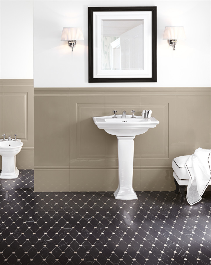 The quintessence of classicism for a washbasin with pedestal in fine white procelain, inspired by the purest British style. It is available in the versions with 1, 2 or 3 holes.