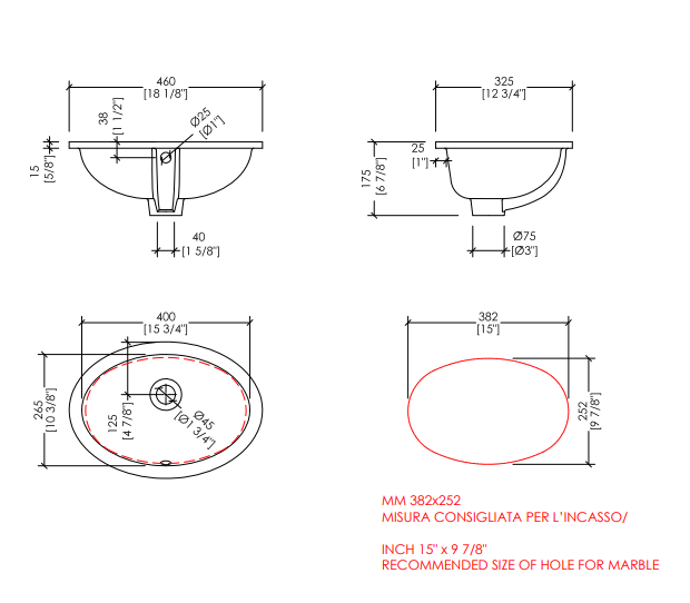 White 46 under countertop basin