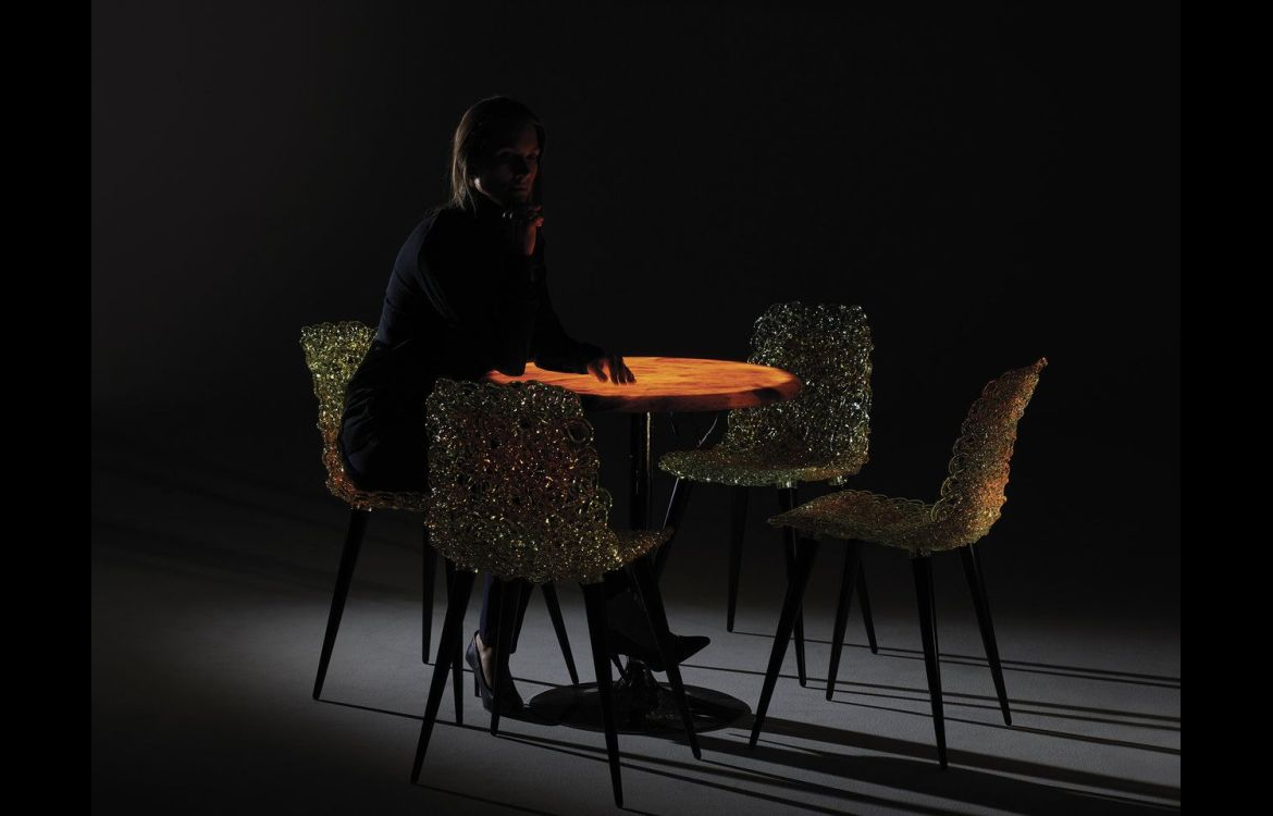 The top of every table is different: the light enhances the differences of the alabaster veins, that with the irregular shapes make every piece as unique.