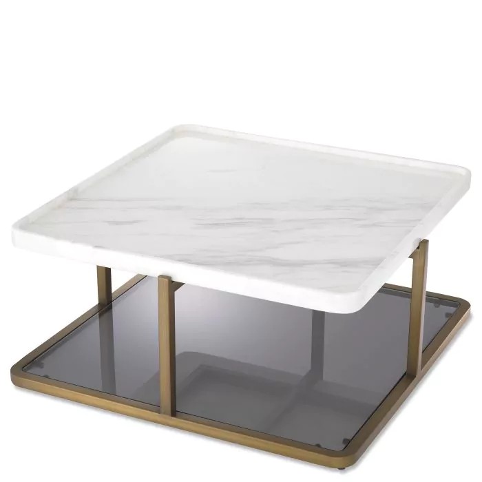 Brushed brass finish | white marble | smoke glass