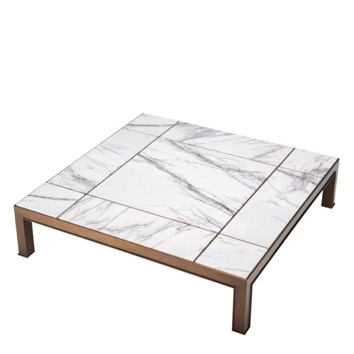 Coffee Table Tardieu celebrates modern retro design. Featuring clean lines, this handsome contemporary piece has a sturdy antique brass finish frame with an inlaid top of Italian bianco lilac marble.