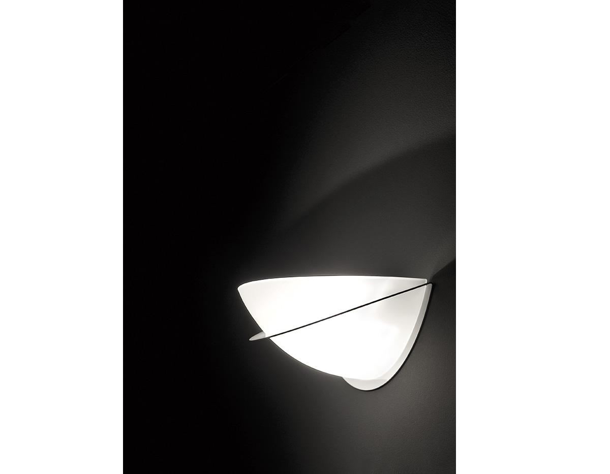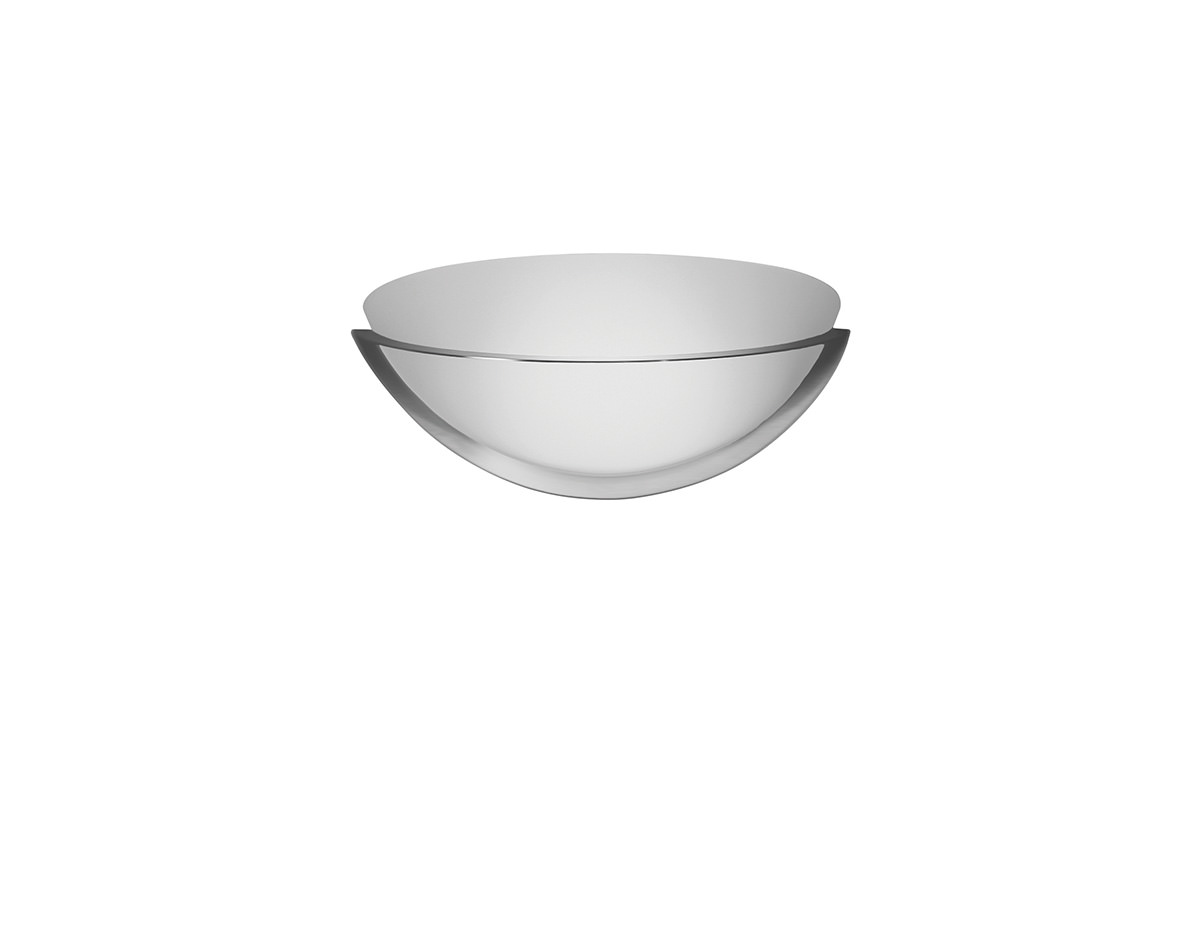 Metallic wall lamp with glass shade and integrated dimmable LED.