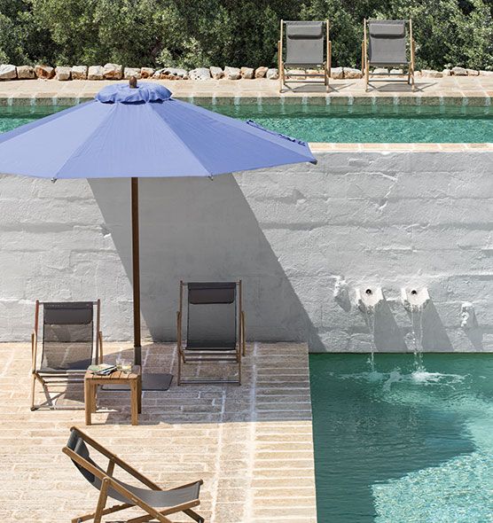 Available with bases of different types and in various colours inspired by nature, the Classic parasols are suited to infinite uses and combinations.