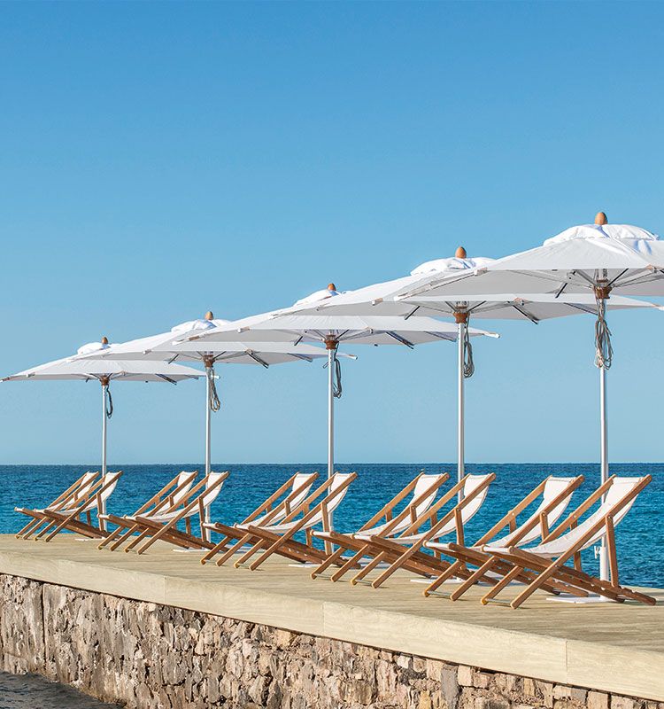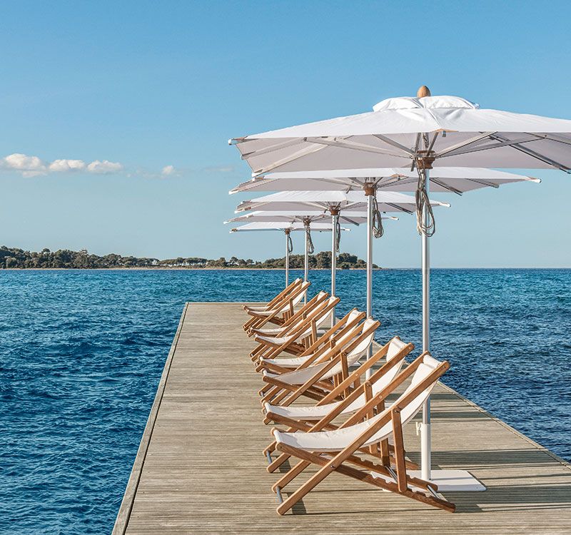 Versatility for every scenario and every need: Free is the line of parasols with solid aluminium frame available with bases of different types and with a multiple choice of colours.