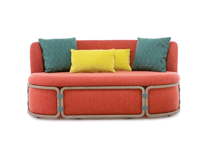 Rotin is a lounge collection where shape, colour and substance come together to tell the story of a new way of thinking and en-joying places for relaxing in company in the open air. Comprising sofa, lounge armchair, coffee table and pouf with structure in pickled teak, Rotin is inspired by Asian tradition, which sees bamboo as the main element for outdoor furnishings together with techniques normally used in the production of rattan furniture.