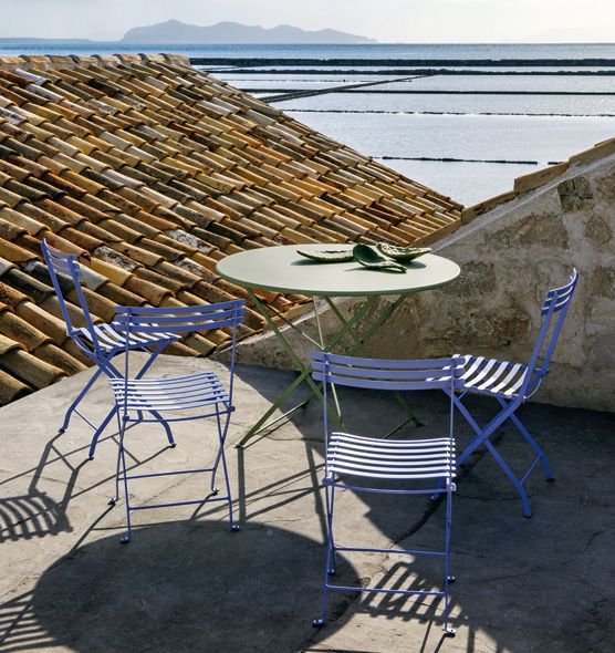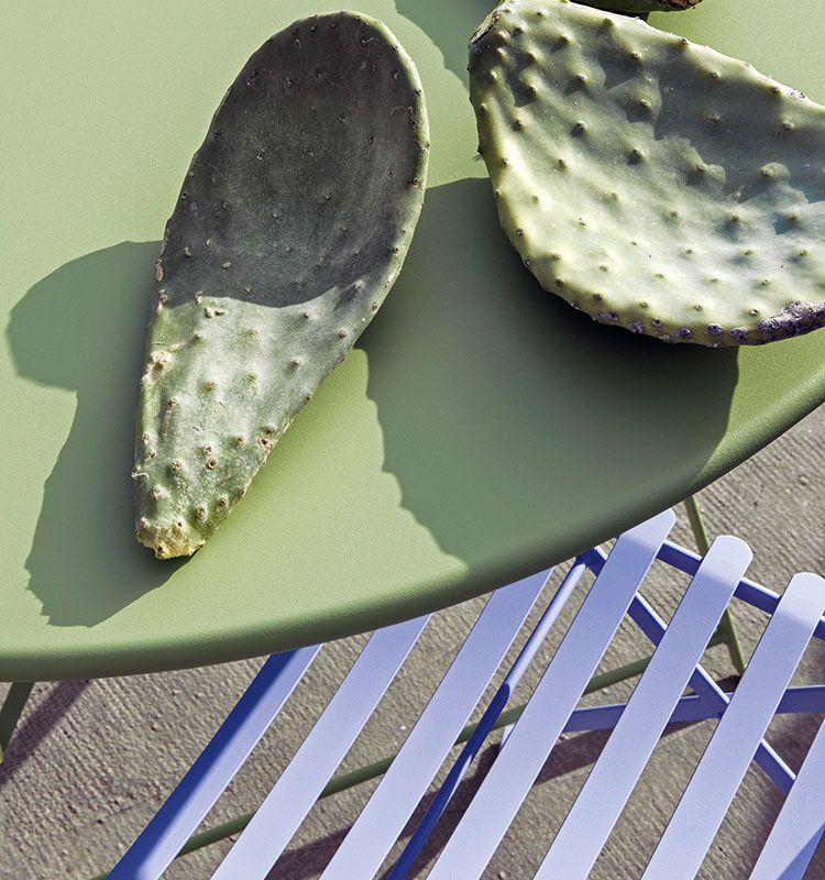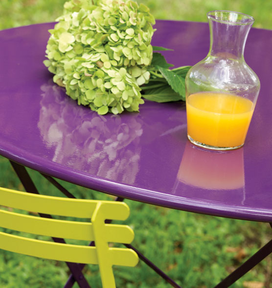 The Flower collection is a line of tables and chairs in which colored metal runs through the bright colors of nature.