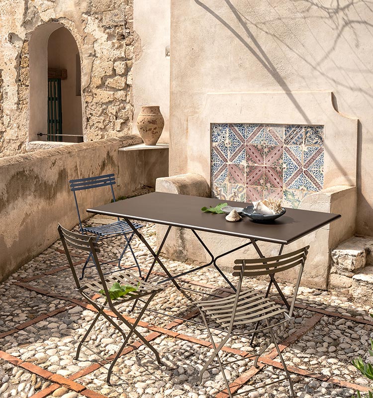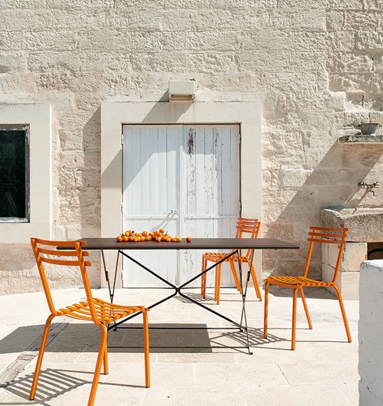 The Flower collection is a line of tables and chairs in which colored metal runs through the bright colors of nature.