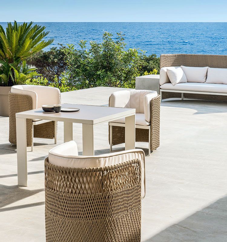 A natural harmony of lines and volumes characterises the Essenza collection, a wide–ranging and versatile solution for furnishing, relaxing and living in the open air. The inserting of brushed steel details in the teak frame creates a distinctive fusion of technology and nature.